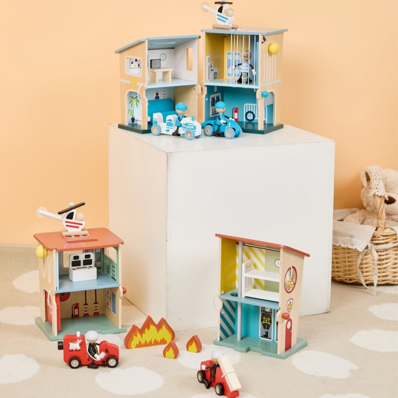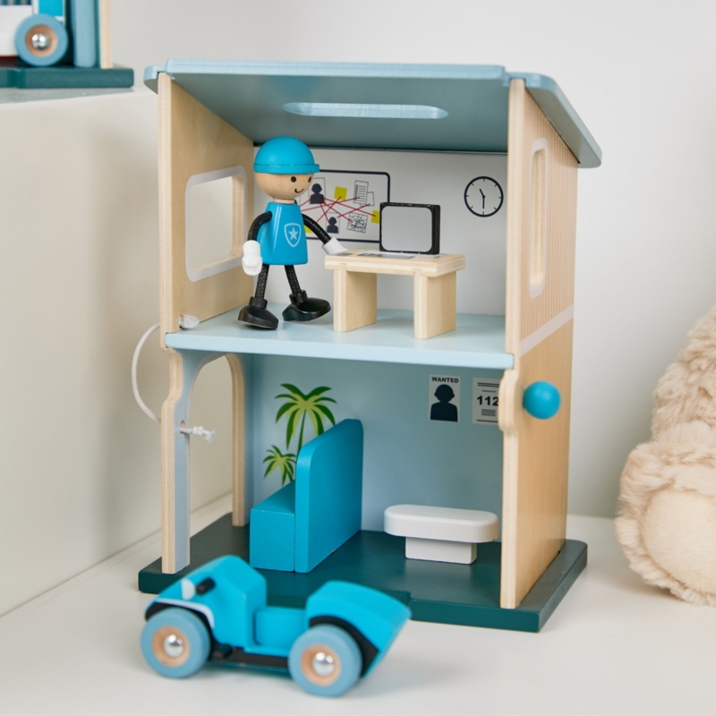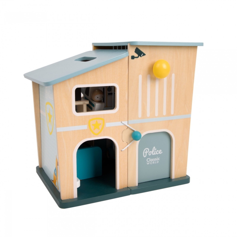 Zestaw Classic World Posterunek Policji 12el. to kompletna zabawka, która pozwoli Twojemu dziecku wcielić się w rolę dzielnego policjanta i dbać o porządek w mieście! Wykonany z naturalnego drewna, ten zestaw zachwyca swoją jakością i dbałością o detale. Posterunek policji został zaprojektowany w Paryżu, co gwarantuje jego unikalny styl i funkcjonalność. Zawiera dwa budynki, z których jeden ma celę, a drugi wyposażony jest w pokój przesłuchań. Dzięki różnym konfiguracjom i otwartym drzwiom, dziecko może swobodnie manipulować elementami, tworząc własne scenariusze. Zabawka jest idealna do rozwijania wyobraźni, zdolności językowych oraz małej motoryki, zapewniając godziny kreatywnej zabawy.