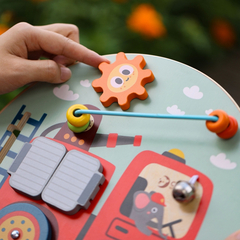 Tablica manipulacyjna 6w1 od marki CLASSIC WORLD jest idealną zabawką dla dzieci. Tablica zawiera w sobie otwierające drzwiczki, koraliki/pętle, obracające się koło, drabinkę, dzwonek oraz pokrętło które zwrócą uwagę malucha na długie godziny. Dzieci uwielbiają strażaków, więc zabawka szczególnie przypadnie do gustu. Ciekawy wygląd i dużo elementów pobudzi wyobraźnię i kreatywność dziecka, rozwinie również zdolności manualne oraz koordynację malucha.