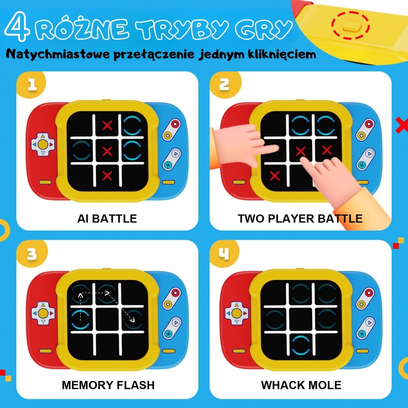Nowoczesna elektroniczna gra w Kółko i Krzyżyk to połączenie klasycznej zabawy z najnowszą technologią, oferująca nieskończone godziny edukacyjnej rozrywki dla całej rodziny. Kolorowa konstrukcja z dotykowym wyświetlaczem sprawia, że każda rozgrywka staje się niezwykle angażująca, a dodatkowe tryby gry zapewniają różnorodną rozgrywkę w pojedynkę lub z drugą osobą.