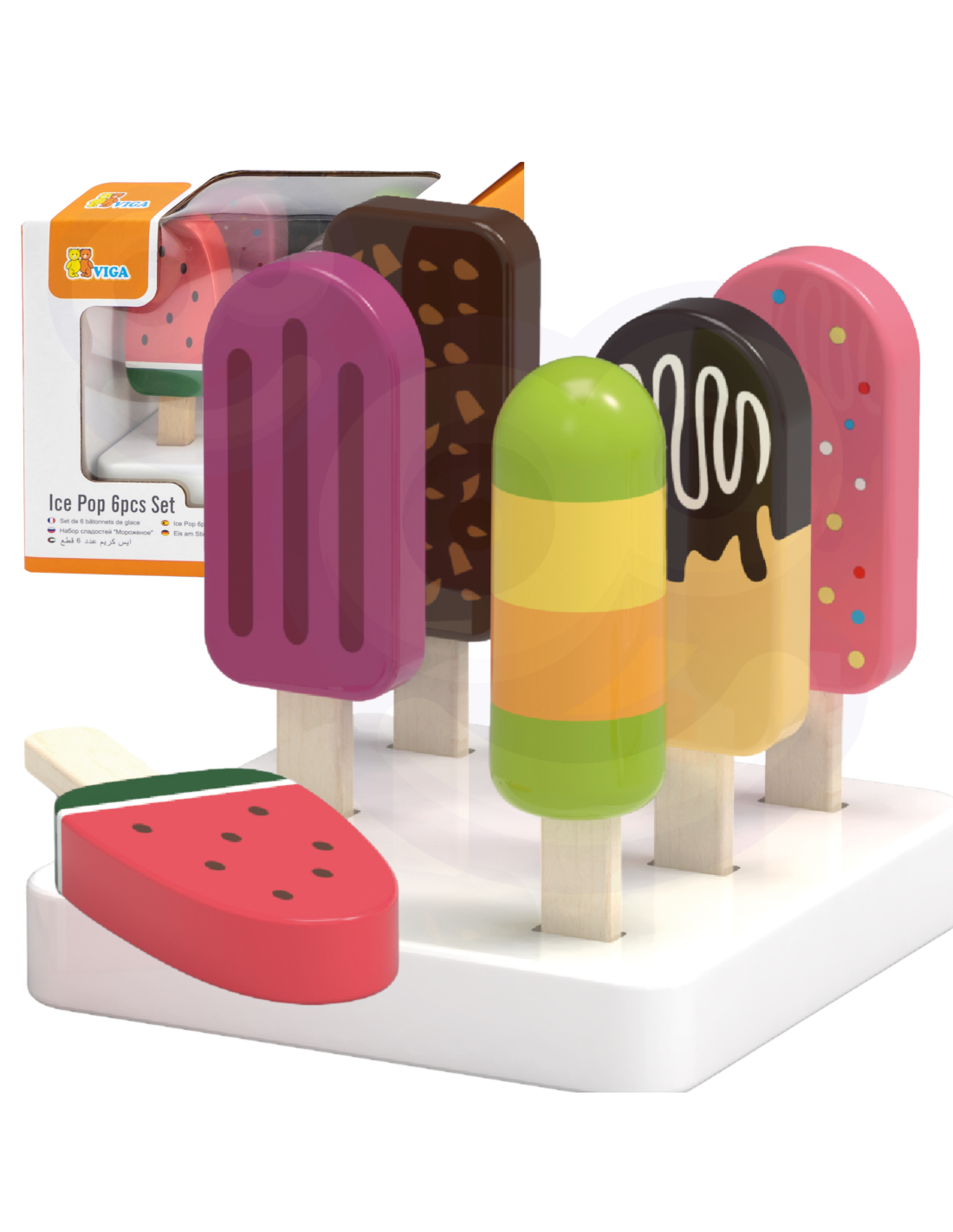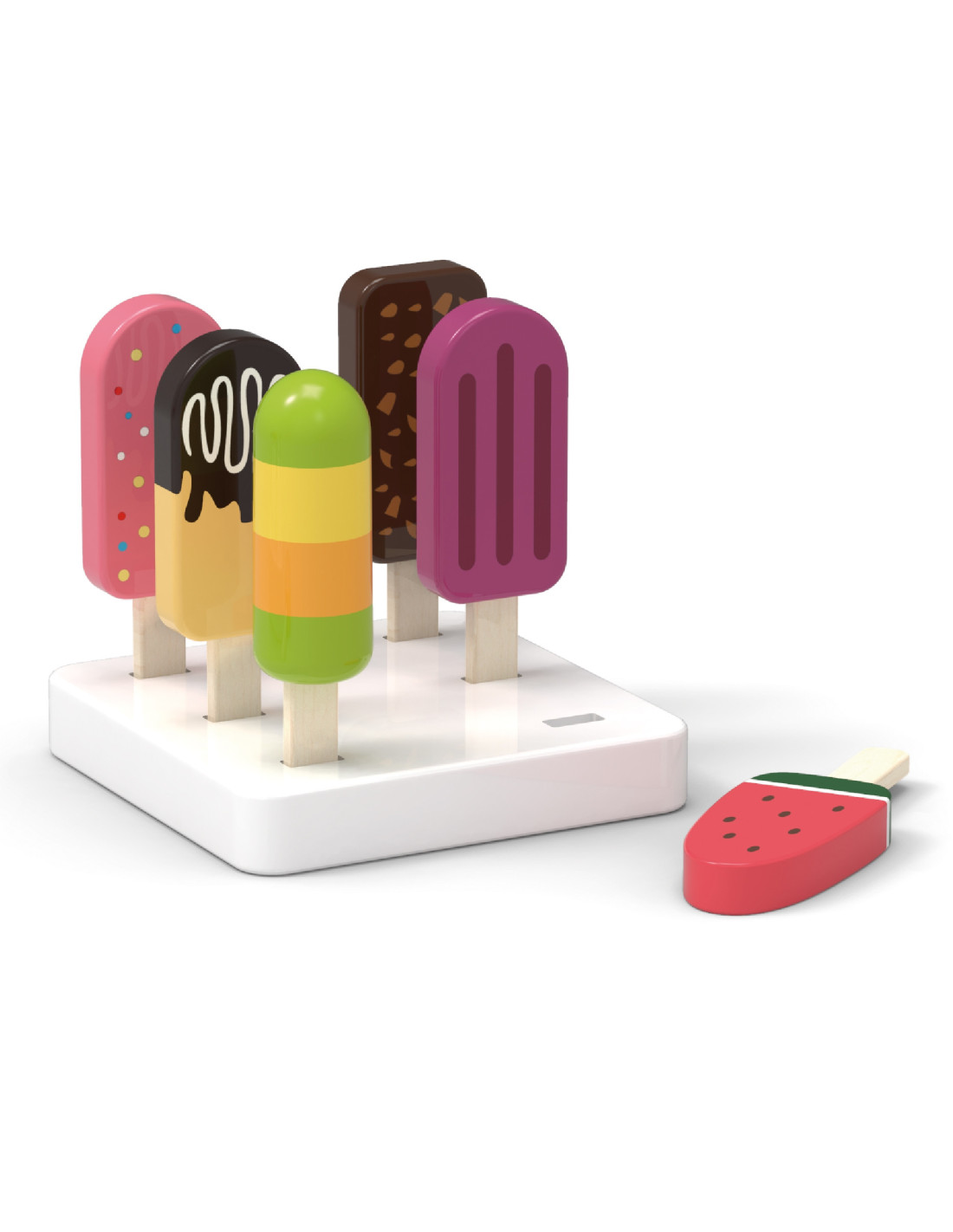A wooden set of six ice cream cones, perfect for dessert on a hot day. The ice cream comes in beautiful, delicious colors and is crafted with meticulous attention to detail. This wooden set is perfect for playing shop or as an accessory for a child's kitchen. Excellent quality, charming colors, practicality, and functionality. Playing house, playing shop, and imitating adult roles are creative ways to build social relationships, develop and learn vocabulary.