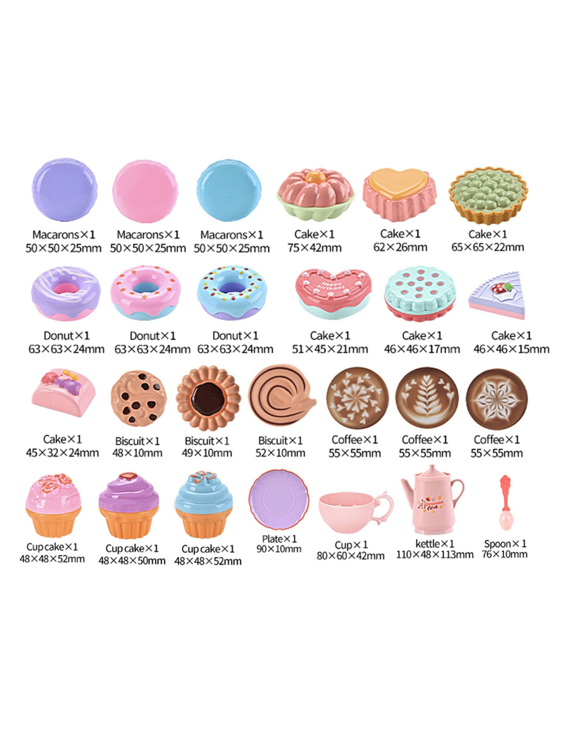 This large shopping basket from WOOPIE is the perfect addition to supermarkets. Children can pretend to be parents shopping or go for a tea or coffee date with friends. The basket has a comfortable handle and is filled with plenty of sweets . In addition to the tea set/service , it also includes coffee and sweets such as cakes, cookies, donuts, macaroons, and muffins. There are 26 items in total! Role- playing positively develops children's imagination , creativity , and awareness of everyday life.