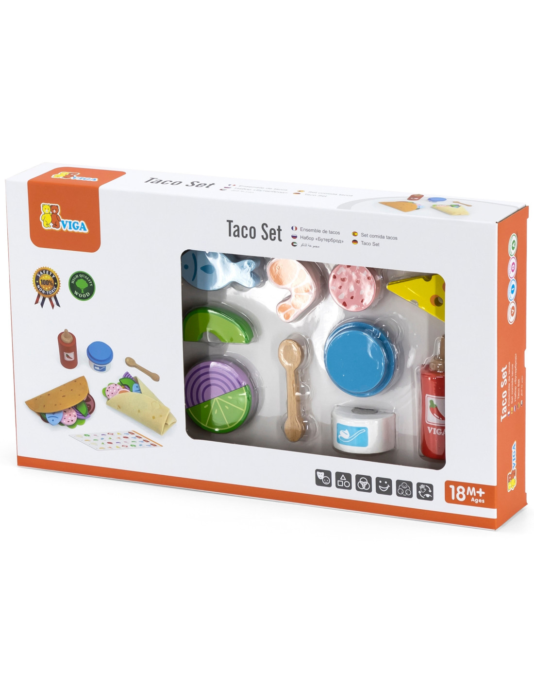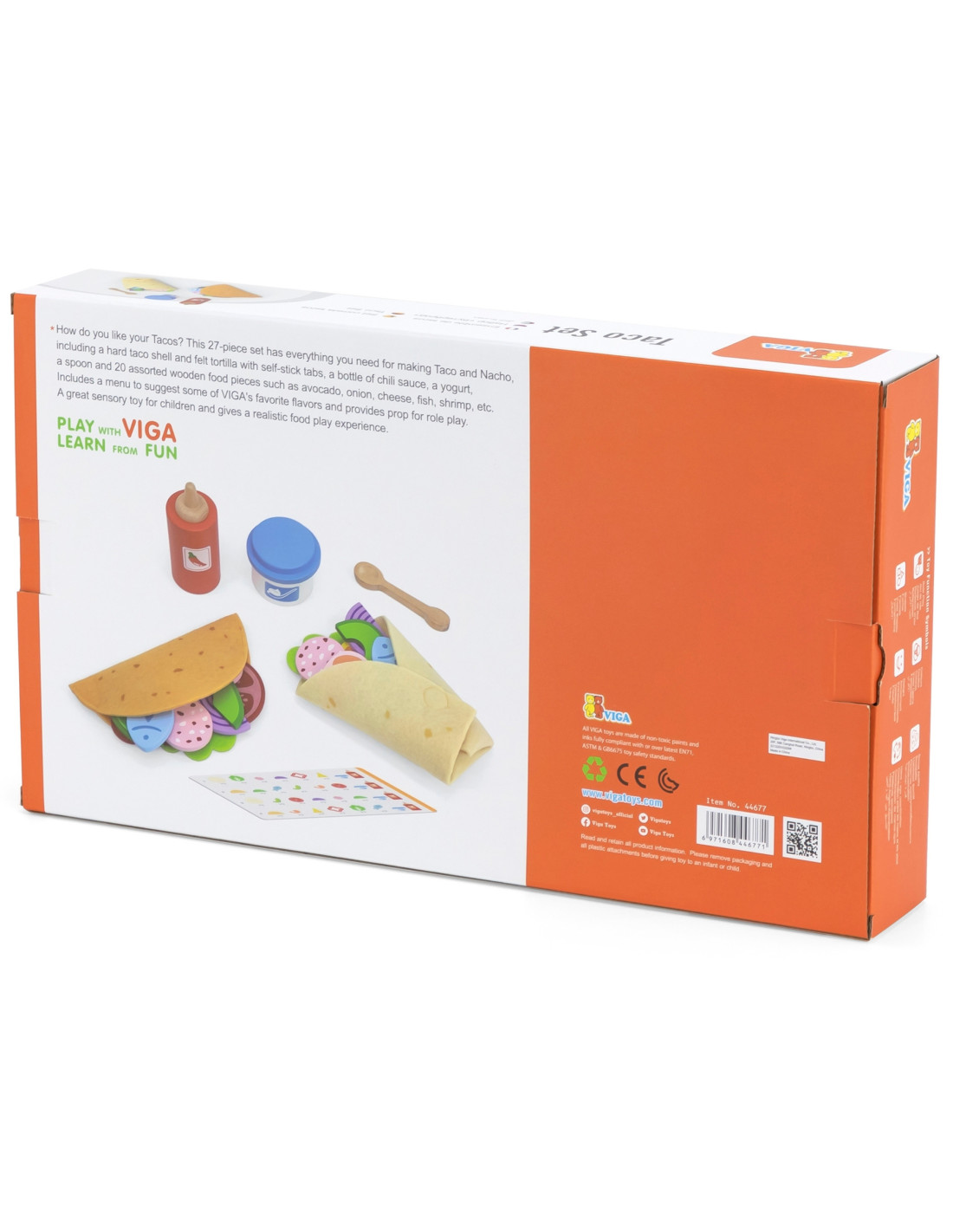 The VIGA Mexican Taco and Burrito Set is a 27-piece set for little chefs who want to make their own delicious tacos and burritos ! This toy provides realistic cooking fun, develops imagination and manual skills, and teaches children to recognize ingredients and create culinary creations.