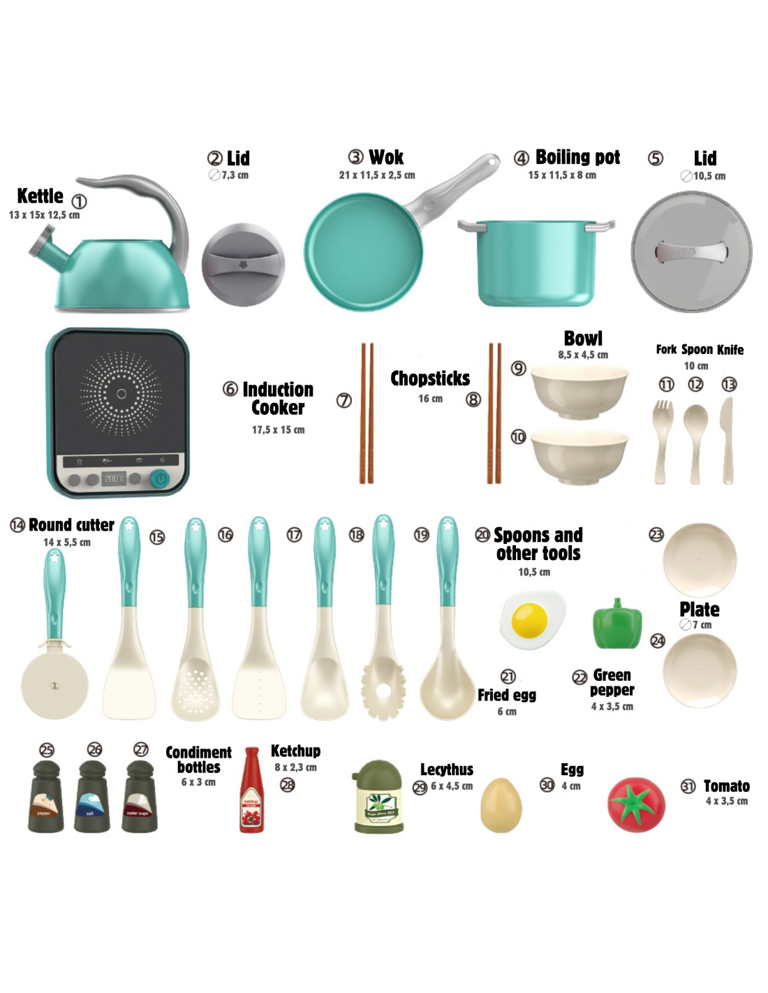 WOOPIE Little Chef's Set Induction Pots Frying Pan Kettle Green 30 pcs.