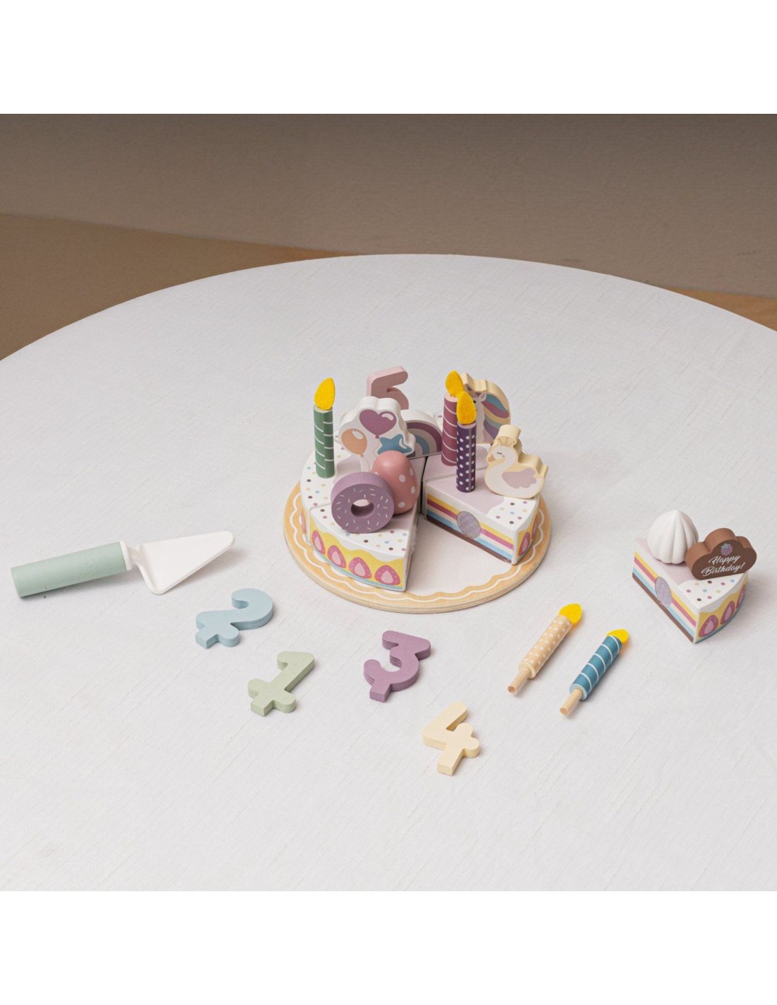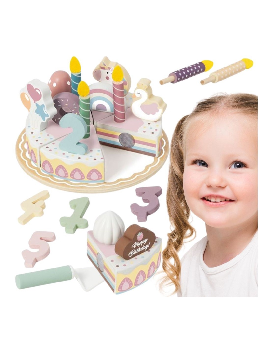 Every child dreams of inviting friends to the most memorable birthday party. This beautifully designed birthday cake playset offers more than just a toy—it's a gateway to a world of fun, where everyone can host the perfect party. The wooden pieces are carefully crafted in soft, soothing shades, and every detail adds magic. Your child will be able to create hundreds of unique party scenarios, shaping their own memories and rules of play.