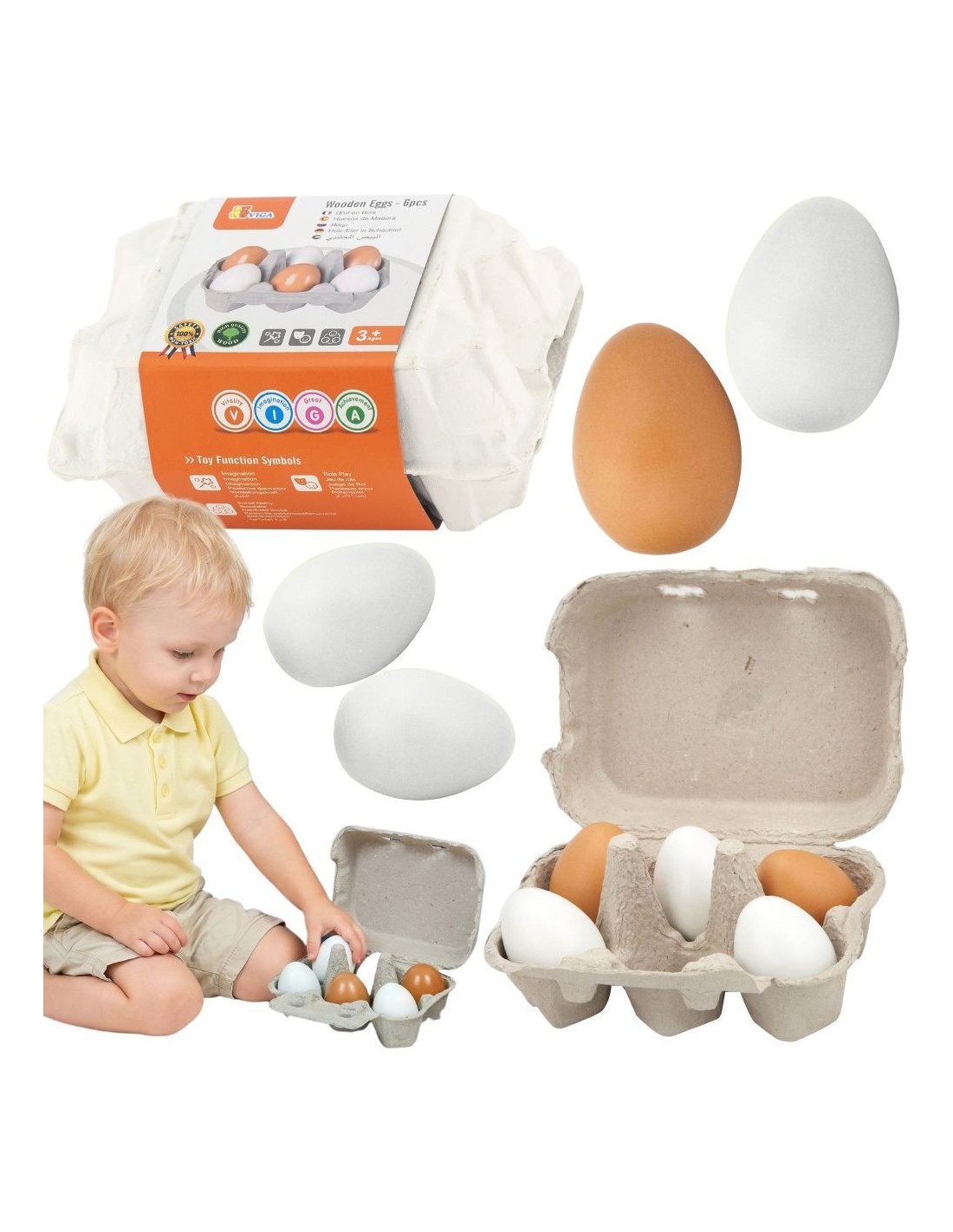 VIGA Wooden Eggs in a Carton