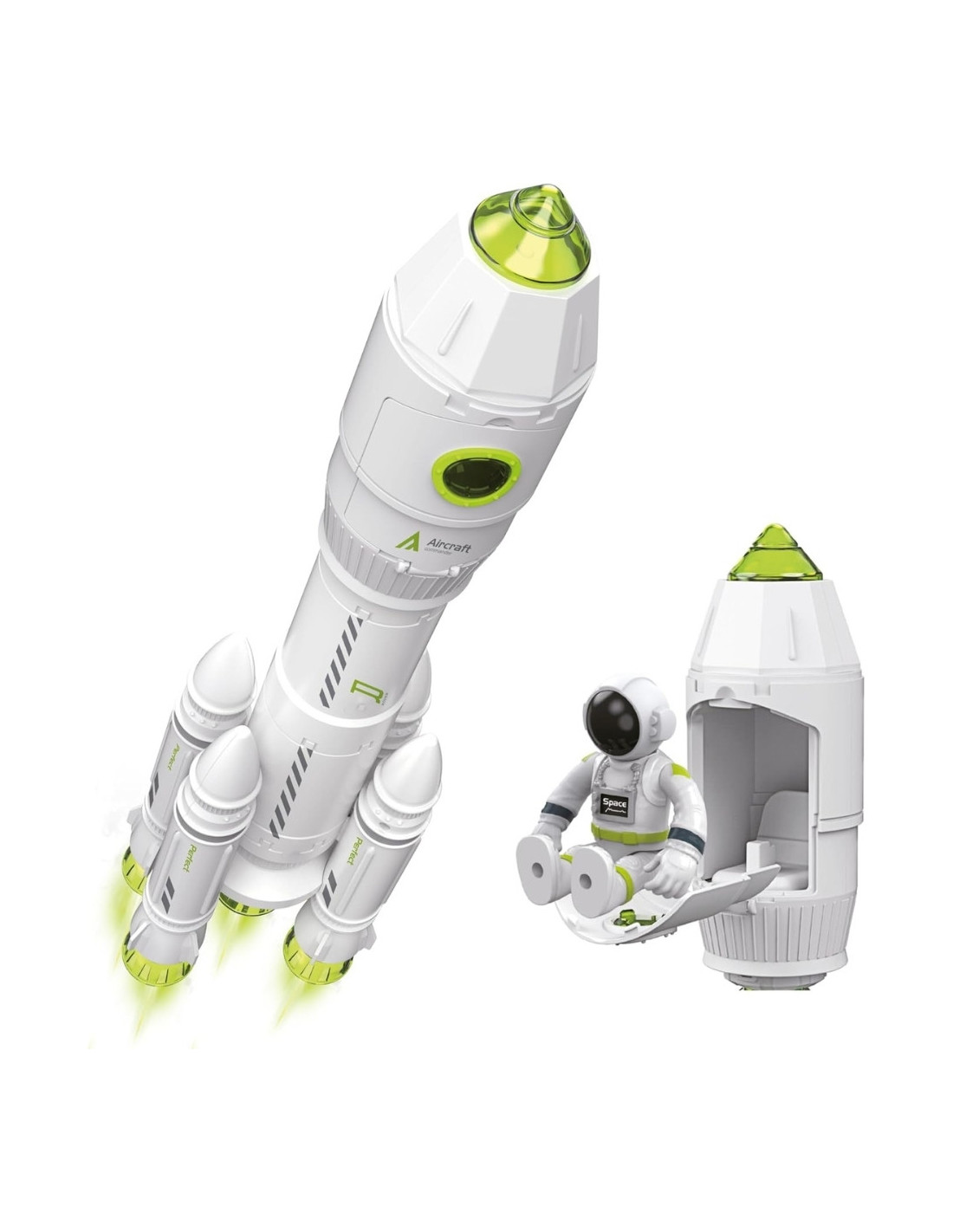 Open the door to an incredible galactic adventure for your child with the incredibly advanced, yet easy-to-use Woopie Space Rocket ! This isn't just a toy—it's a complete, interactive space mission that engages the senses, sparks the imagination, and teaches through play. Designed with young explorers dreaming of space exploration in mind, this product features numerous features , realistic light and sound effects, and detailed construction, allowing children to independently prepare the spacecraft for launch, place the astronaut in the capsule, start the countdown, and... ignite the engines! After filling the rocket with ordinary tap water and pressing a button, the toy simulates a real launch: glowing engines, realistic countdown sounds, and a spectacular smoke effect make the entire scene look like a NASA space shuttle taking off! An interactive console on the rocket triggers the countdown and lights up the cockpit , giving children the complete feeling of actually being in control of a space mission. The rocket also features a detachable capsule with an opening cabin that holds an astronaut figure. The cabin can be easily connected to or separated from the rocket with a simple twist – perfect for imaginative play, such as landing on an alien planet or making emergency returns to Earth. All modules are designed for easy handling by children, while also offering a wealth of creative play opportunities. This makes a perfect gift for birthdays, holidays, or any other occasion, sure to delight any young fan of space, technology, and futuristic adventures. Give your child a toy that not only entertains but also develops!
