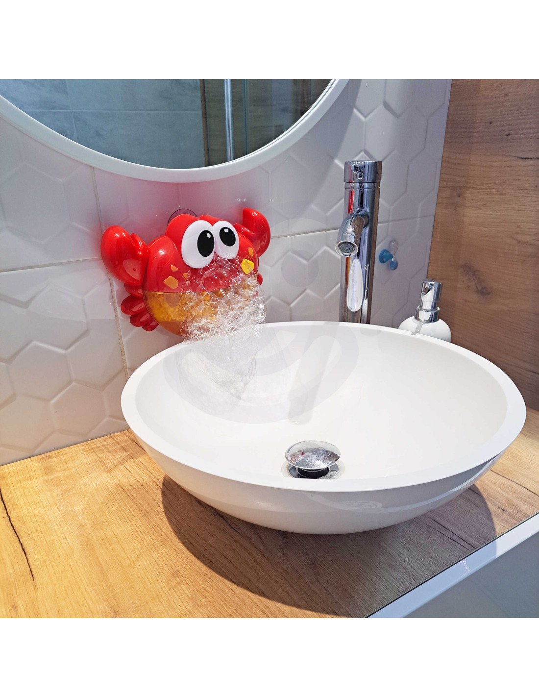 The cheerful bubble -making crab from WOOPIE will be a blast for your child, because every child loves a bubble bath! The toy is easy to use . Fill the crab with a mixture of water and detergent and mount it on the suction cups at a safe distance from the water ( the toy is not waterproof! Be careful not to get it wet or flooded). Then, simply press the ON button and it's ready; the toy automatically releases fluffy bubbles . All this is accompanied by sound effects in the form of a cheerful melody (the melody can be turned off at any time). This toy will effectively entertain and encourage any child to take a bath .