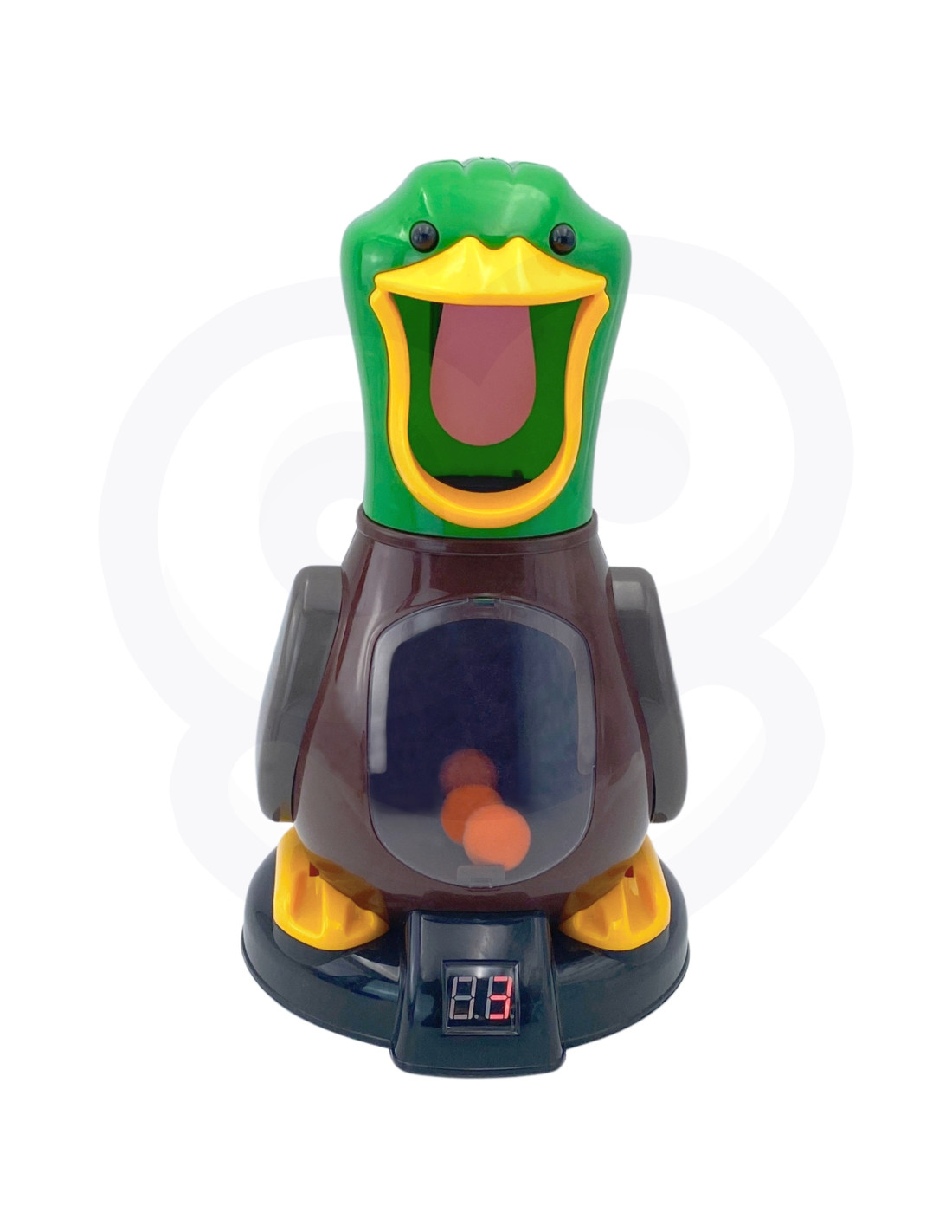 - - we aim at the duck's tongue, after the ball falls inside the duck counts the points and displays the result on the display