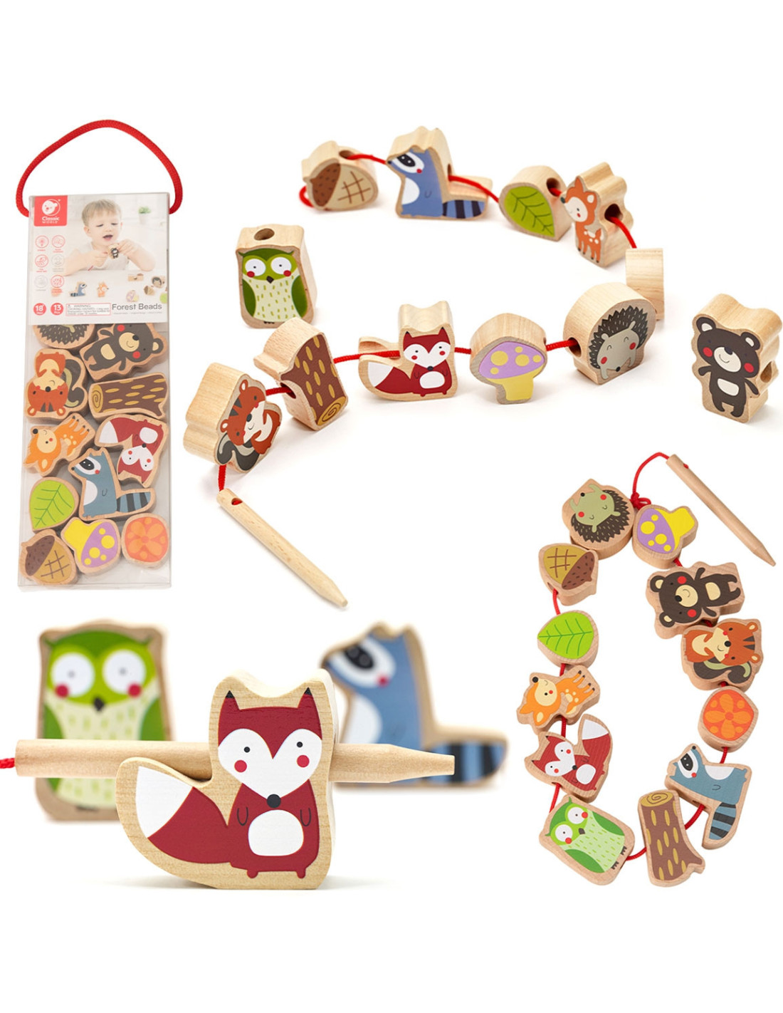 Classic World Forest Animals Bead Stringing Beads are the perfect toy for developing children's fine motor skills. This children's beading puzzle features a forest animal theme. The Classic World beading puzzle is a classic set of wooden pieces with holes for children to thread a string through. It's a great activity that develops dexterity and sparks children's curiosity about forest animals.