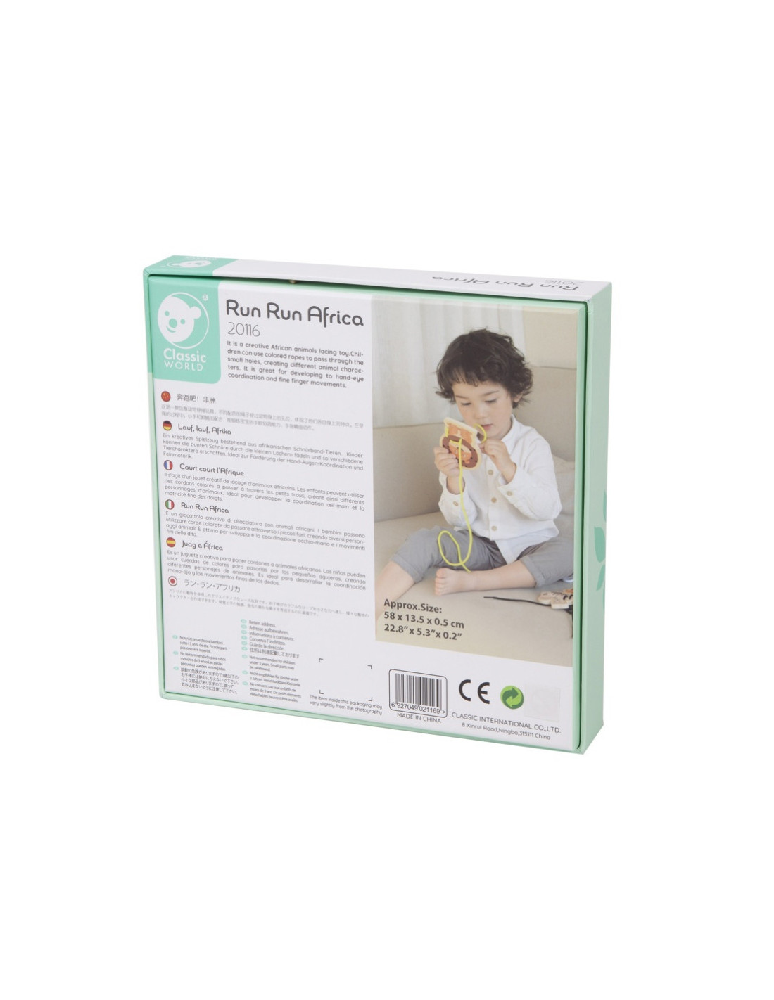The CLASSIC WORLD Wooden Shoelace Animal is an excellent wooden teaching aid. It will help children learn how to use a shoelace properly. Through play, they'll discover how easy and enjoyable it is. The shoelace also develops manual and visual dexterity skills.