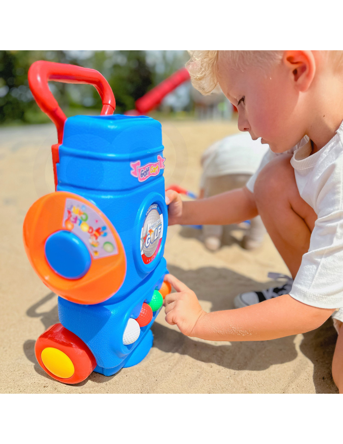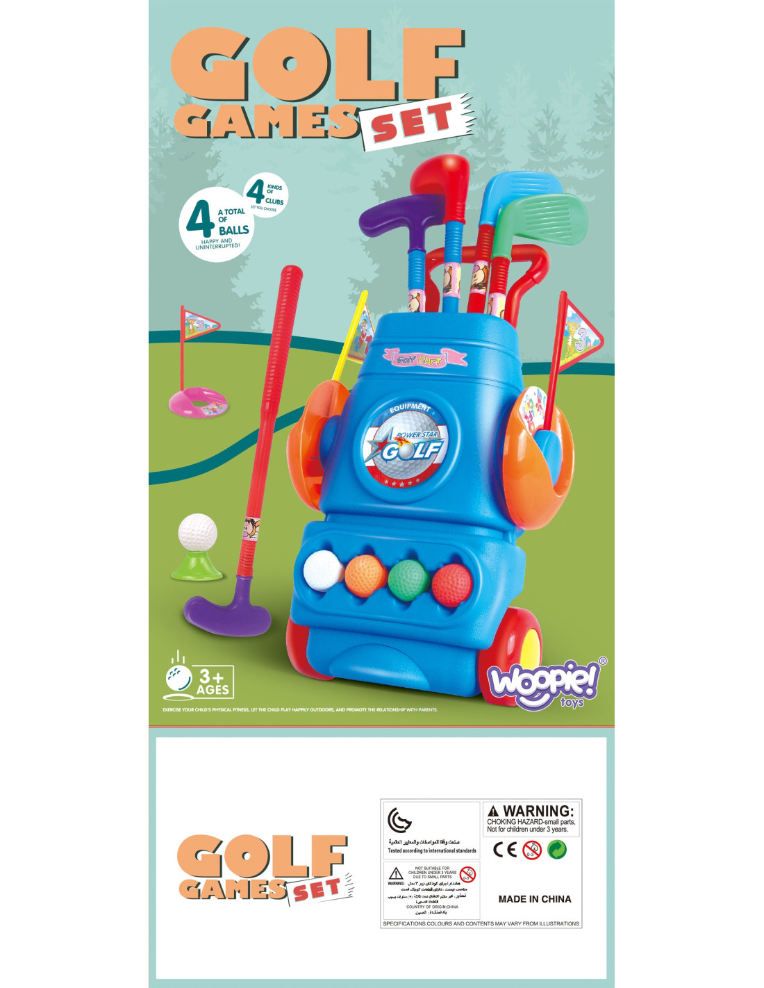 The Woopie Golf Set is the perfect way to actively spend your free time. It develops concentration , reflexes , dexterity , and precision . Made of 100% high-quality, non-toxic, and weather-resistant plastic, it's great fun for the whole family. The easy-to-set-up hole allows for play both in the garden and at home. Suitable for children over 3 years of age , the set includes 4 golf clubs and 4 balls in various colors, as well as two "holes" with flags . The entire set is easy to transport thanks to the wheels attached to the trolley.
