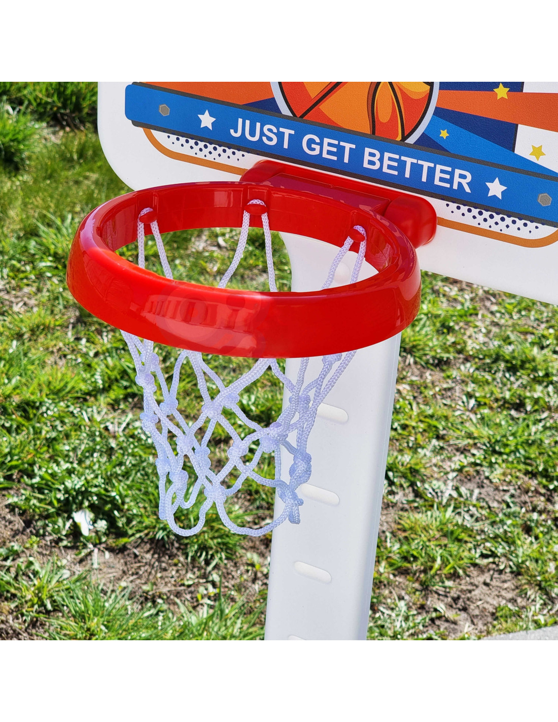 This great basketball set with a ball and pump from Woopie is the perfect sports set for your child! This set will encourage your child to play sports. Playing basketball will help your child develop gross motor skills , which is ideal for proper development. The basketball grows with your child and has an adjustable height. A big plus is that it can be used both indoors and outdoors – your child will be able to play regardless of the weather. The basketball is large enough ( height: 125 cm ) to allow your child to play professional games with their friends. After playing, you can put the ball away in its dedicated space (near the base).