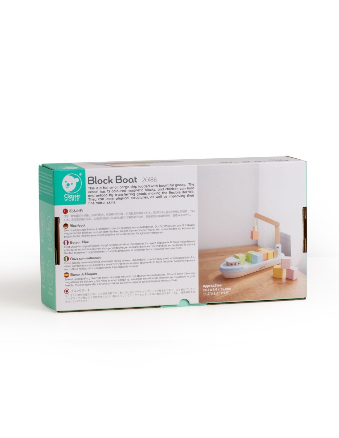 The Wooden Stacking Ship from CLASSIC WORLD is a fun little cargo ship loaded with abundant goods. The ship has 12 colorful magnetic blocks , and children can freely load and unload them by moving the flexible crane. This colorful ship will provide hours of imaginative play for your little one, improving their dexterity and concentration.