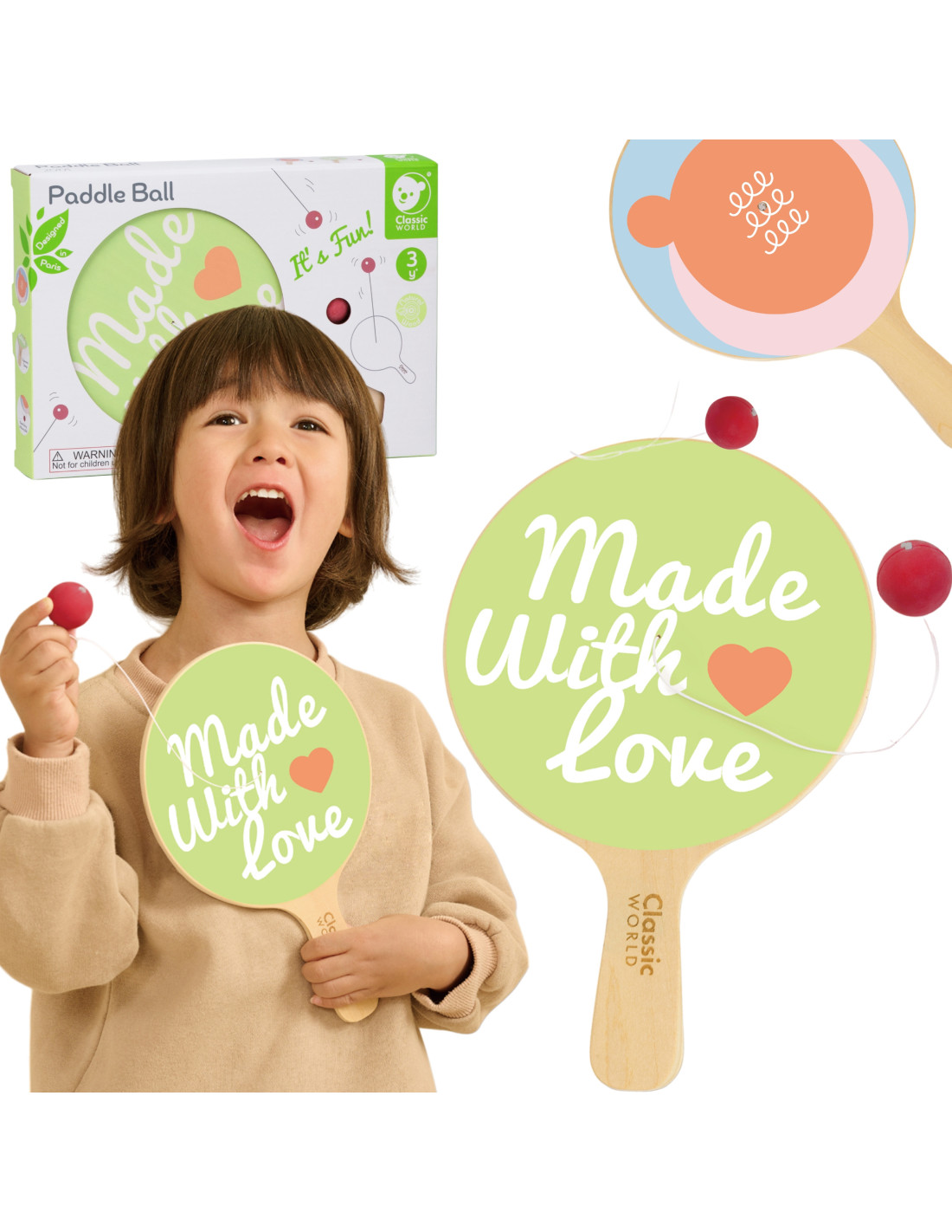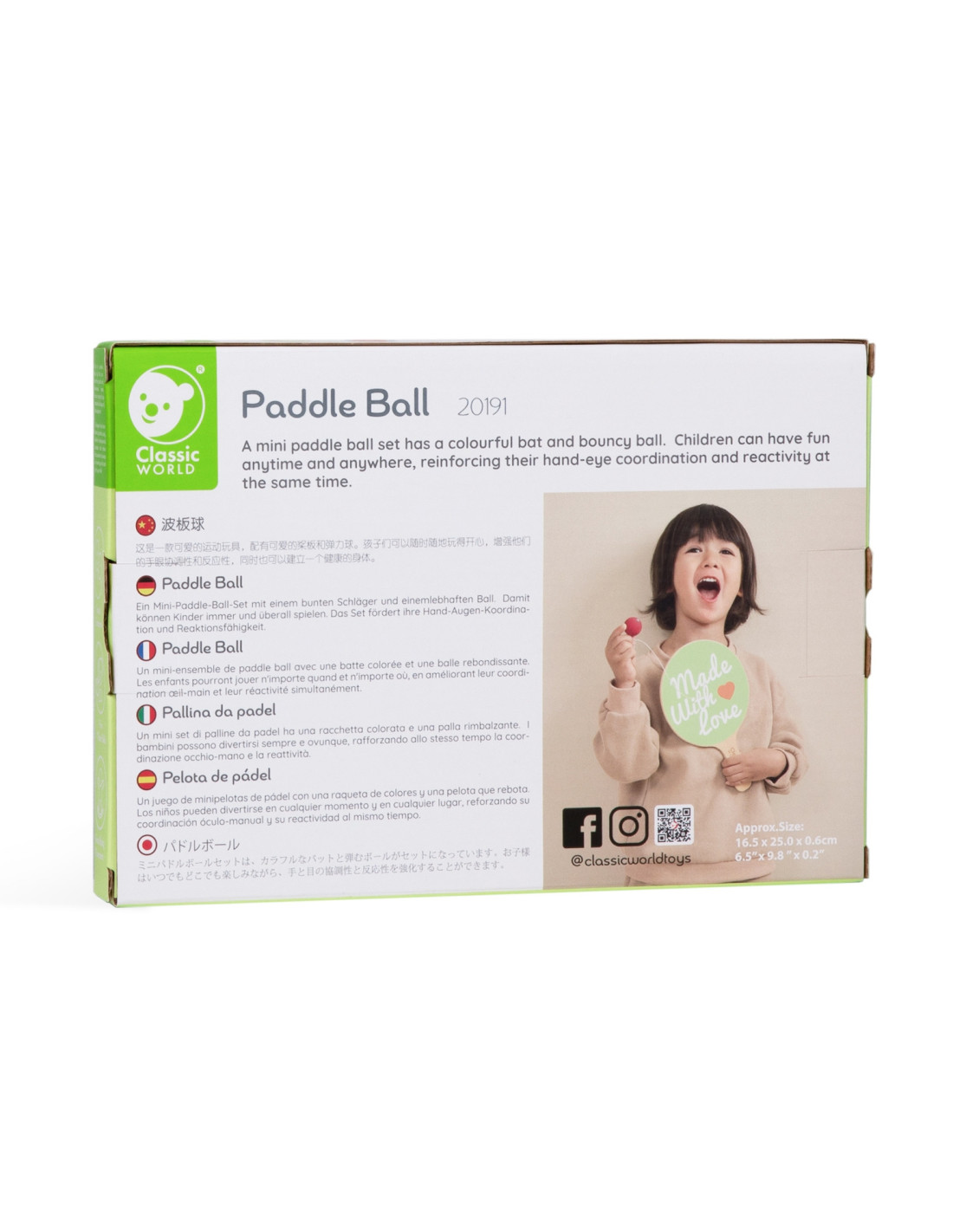 Paddle Ball by CLASSIC WORLD is an adorable sports toy with a cute paddle and a bouncy ball. Kids can play anywhere , anytime , strengthen hand-eye coordination and reactivity, and build a healthy body .