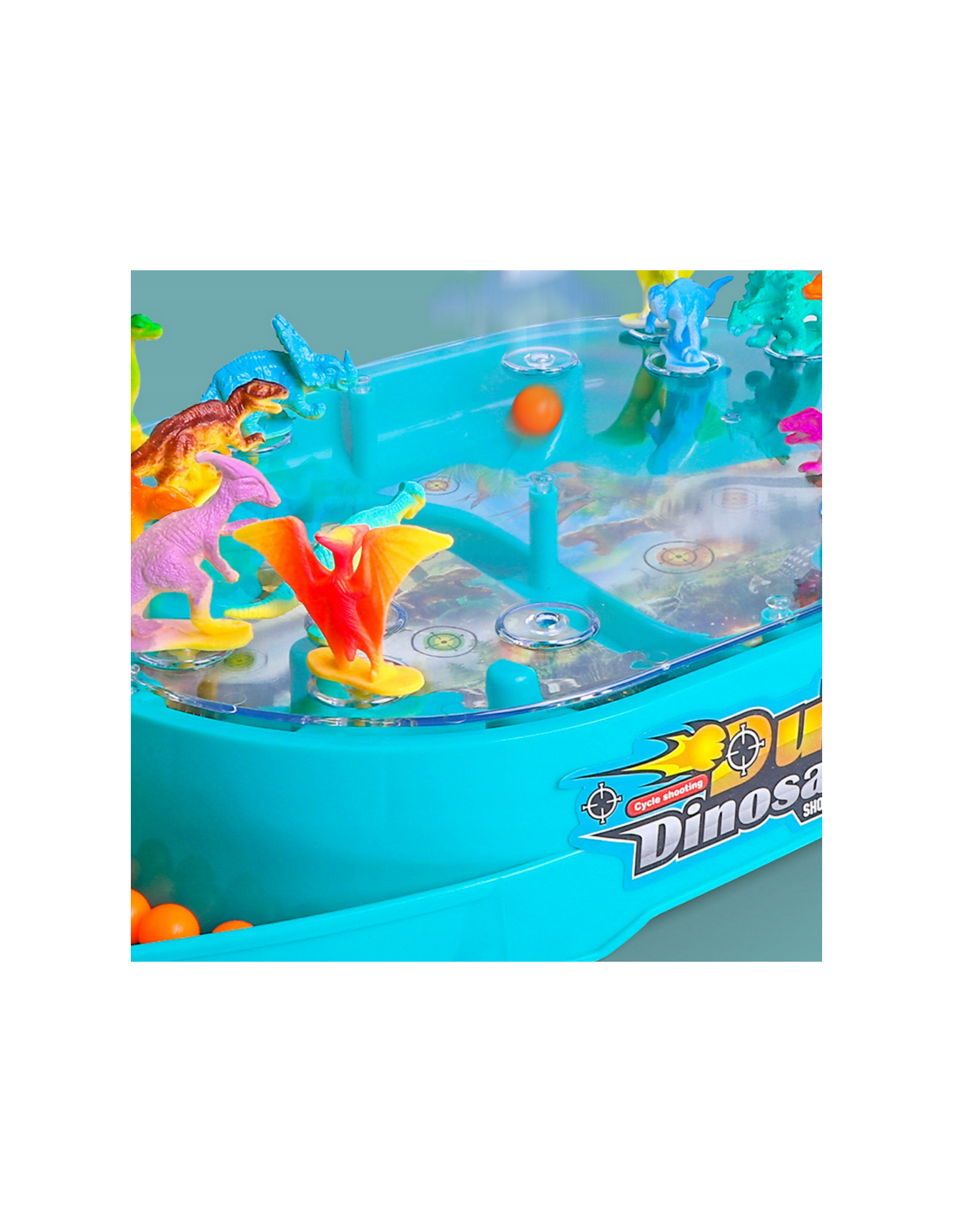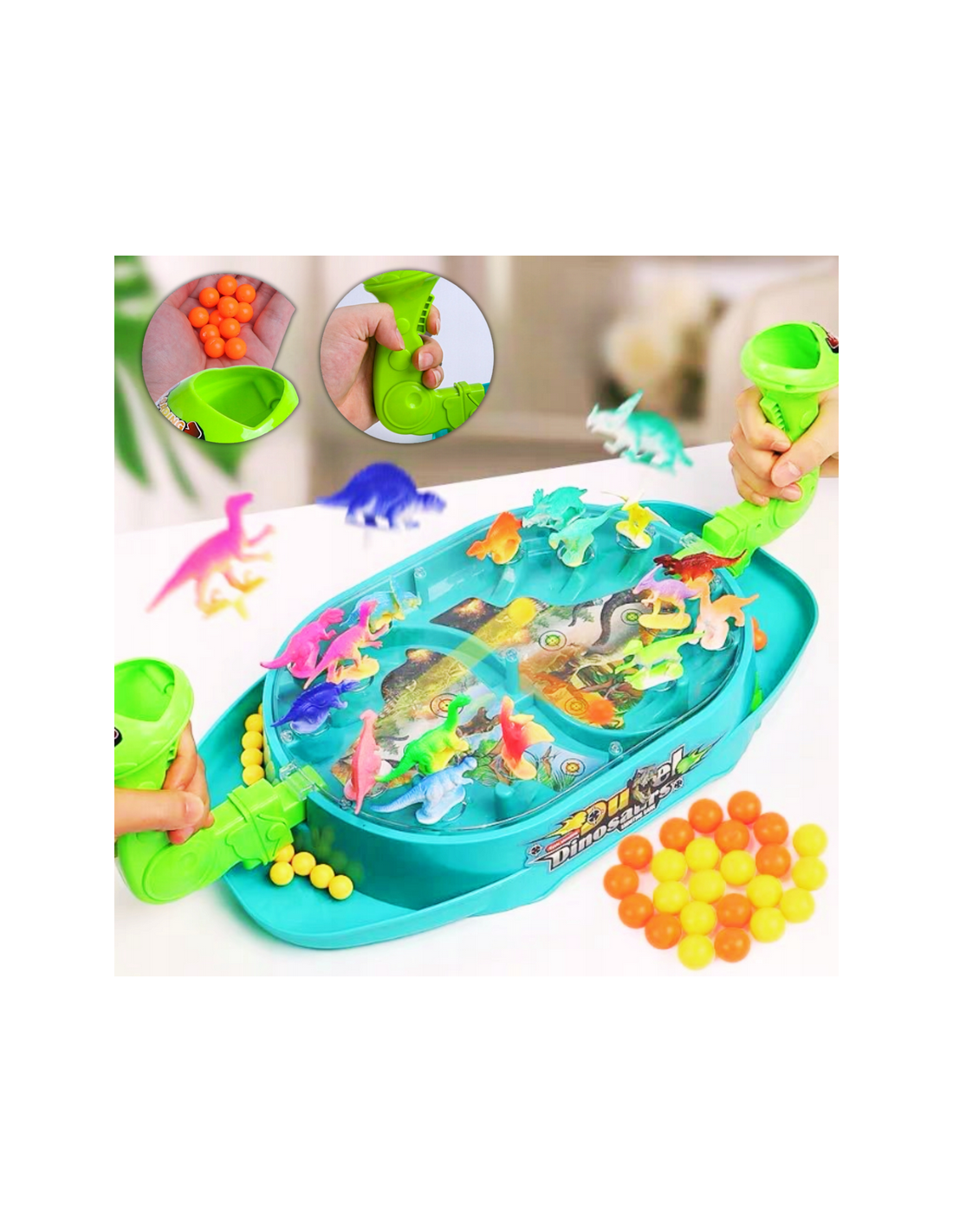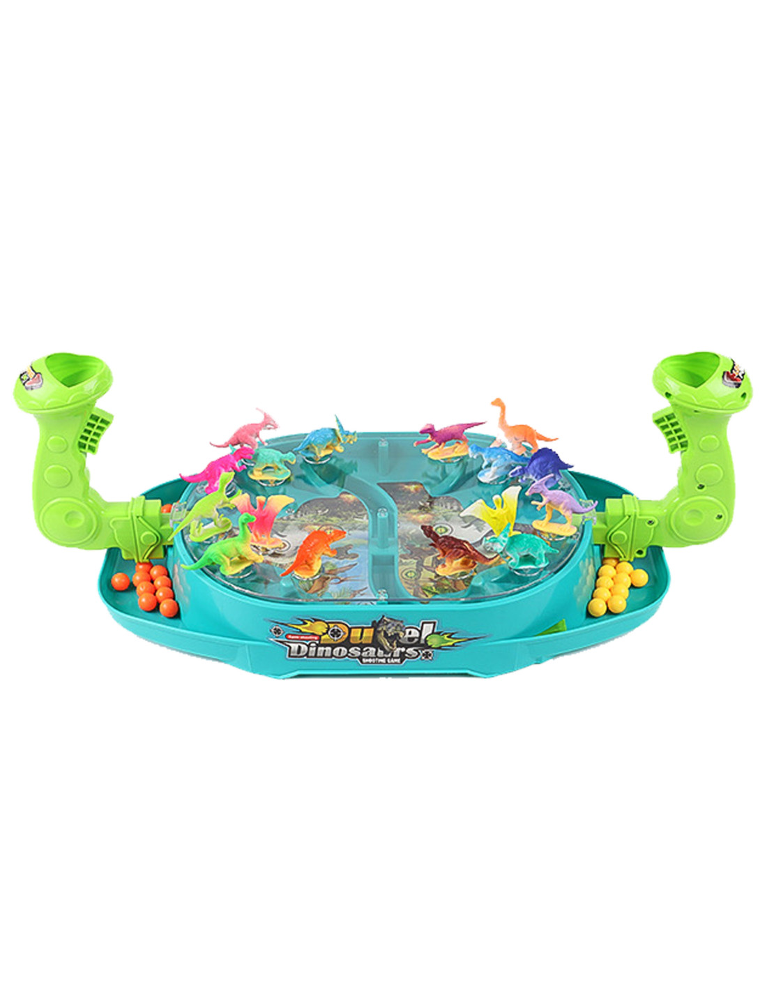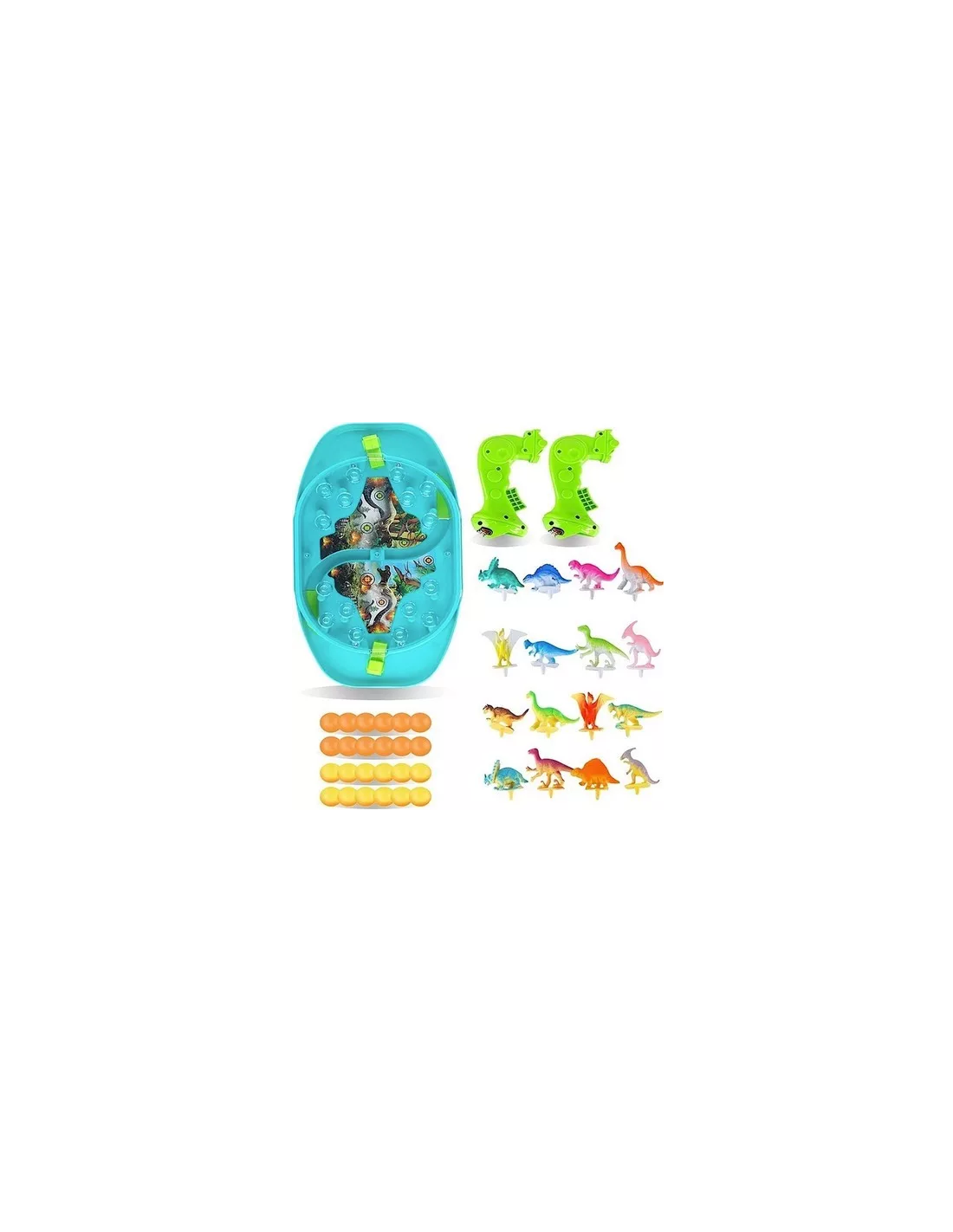 - - the set includes a game board, 16 dinosaurs, 24 balls