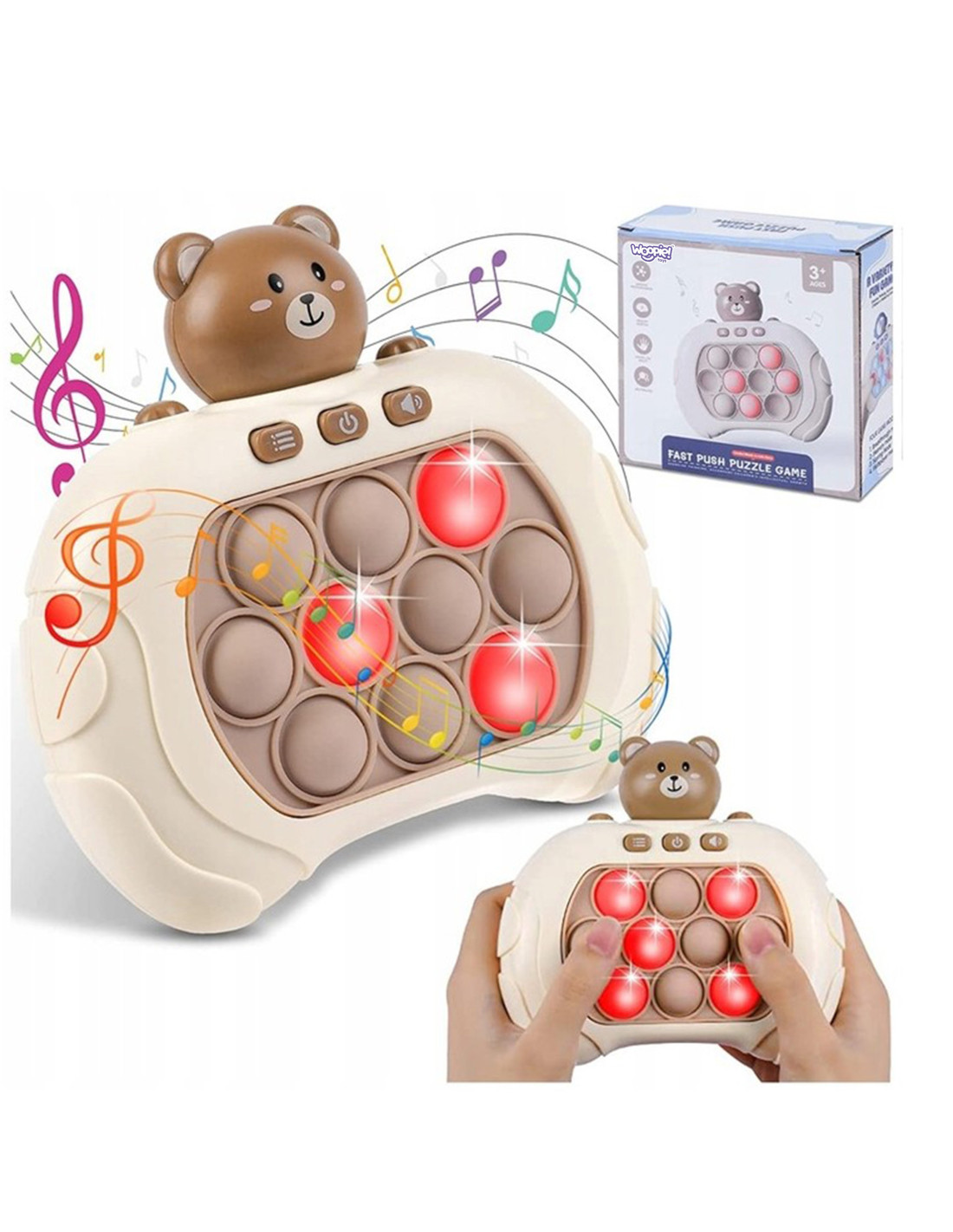 The POP IT Teddy Bear game is a stress-relief toy perfect for even the youngest children. The game produces cheerful sounds that encourage children to play and add variety to the gameplay. The toy's small size makes it easy to take with you. Pop It is a delight for children and adults alike , who eagerly reach for it. It develops the mind, manual skills, and hand-eye coordination, and trains observation skills, helping to combat stress.