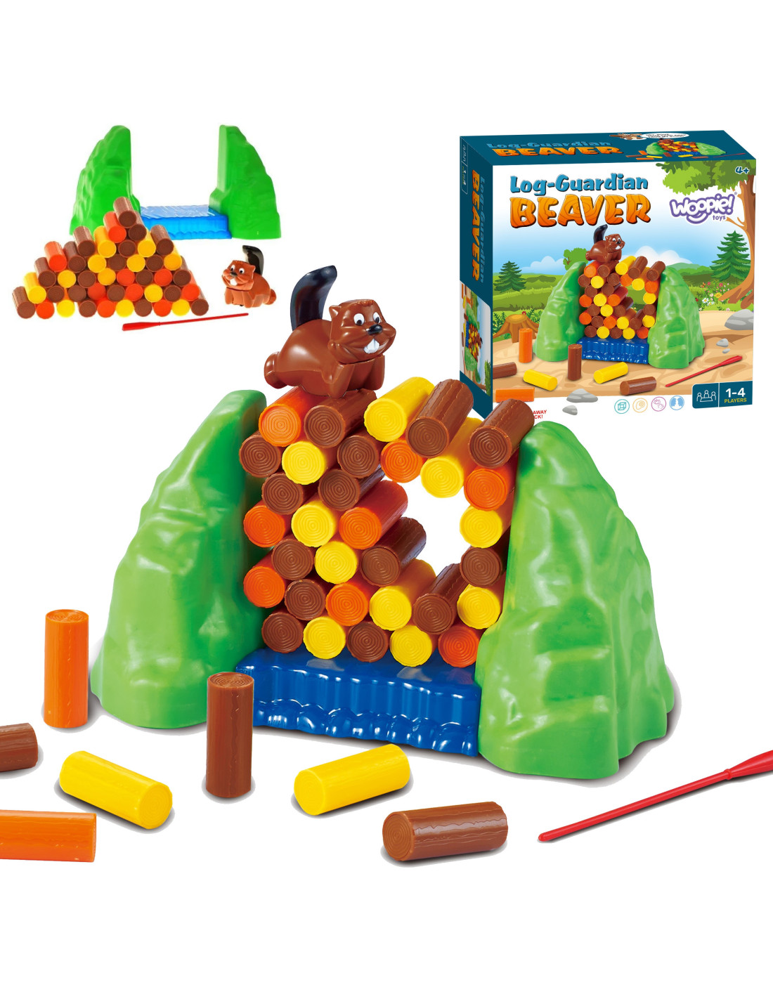 A family-friendly arcade game from the WOOPIE brand , this game features simple rules, logical thinking , and fun for all ages. Build a dam. Place the beaver on top, then pull logs from the wall one by one. When the wall collapses, the game ends. While playing, your little one will learn concentration , strategy , and problem-solving , and improve hand-eye coordination .
