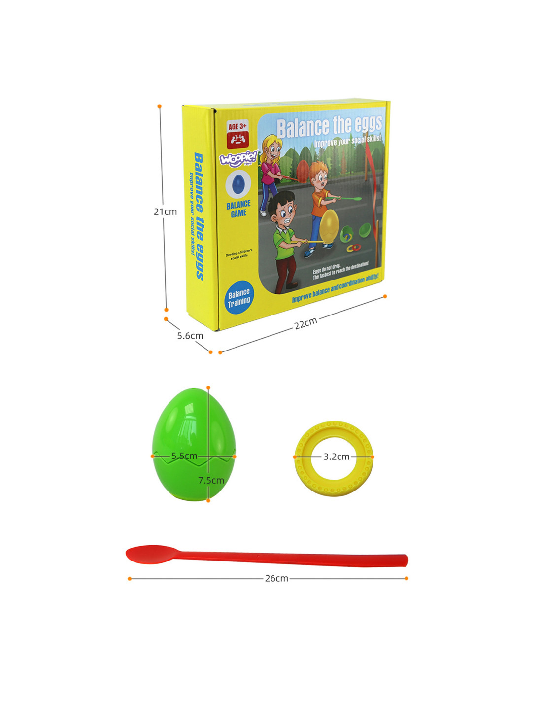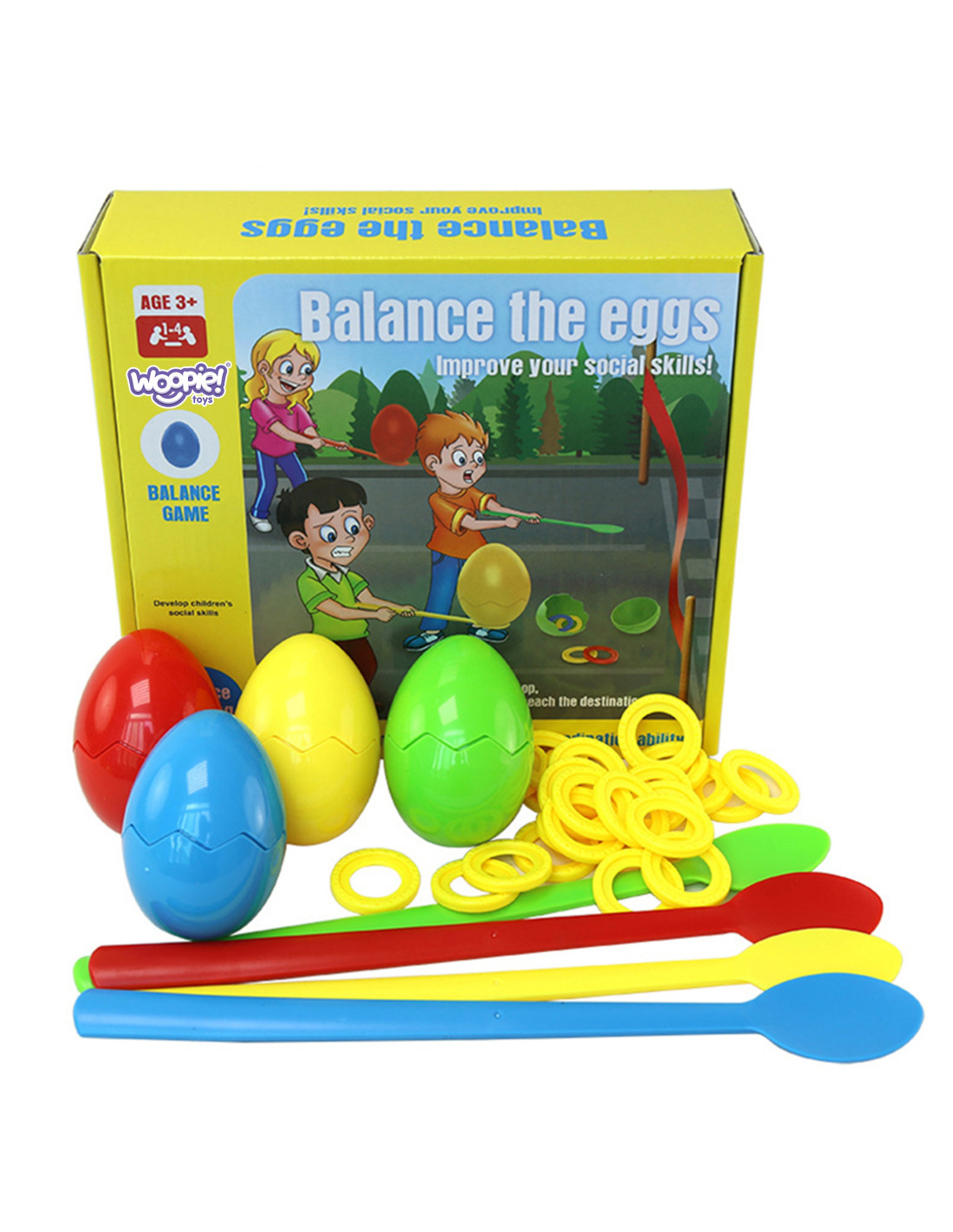 The WOOPIE Balanced Eggs Skill Game is perfect for both group and solo play. This toy helps children improve their motor skills by holding and moving the egg on a stick. It can be used both indoors and outdoors, making it a fun way to spend time with your child.