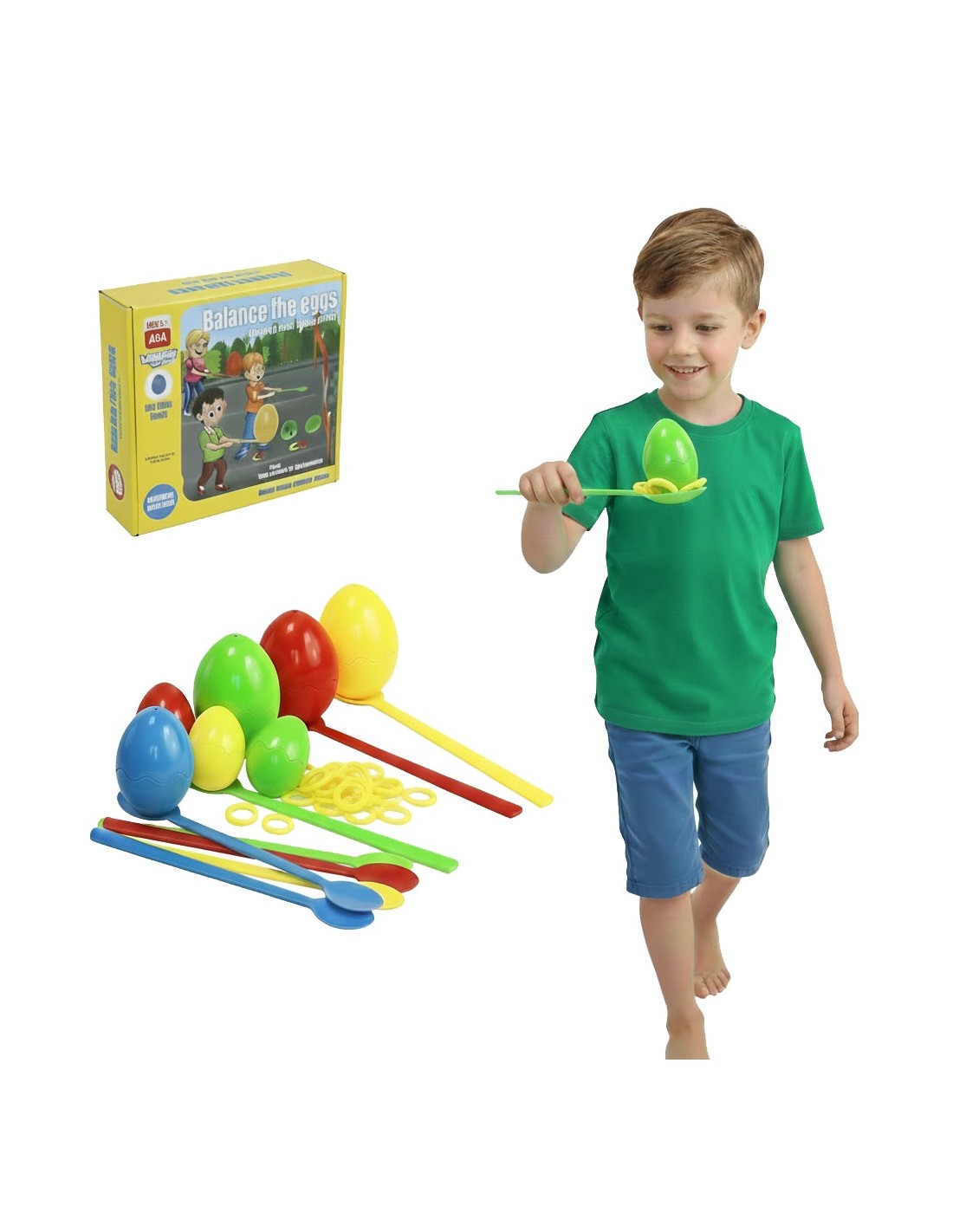 - - the set includes colored eggs, colored sticks, rings,