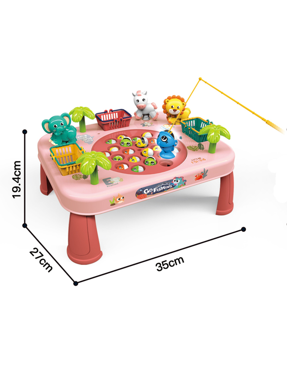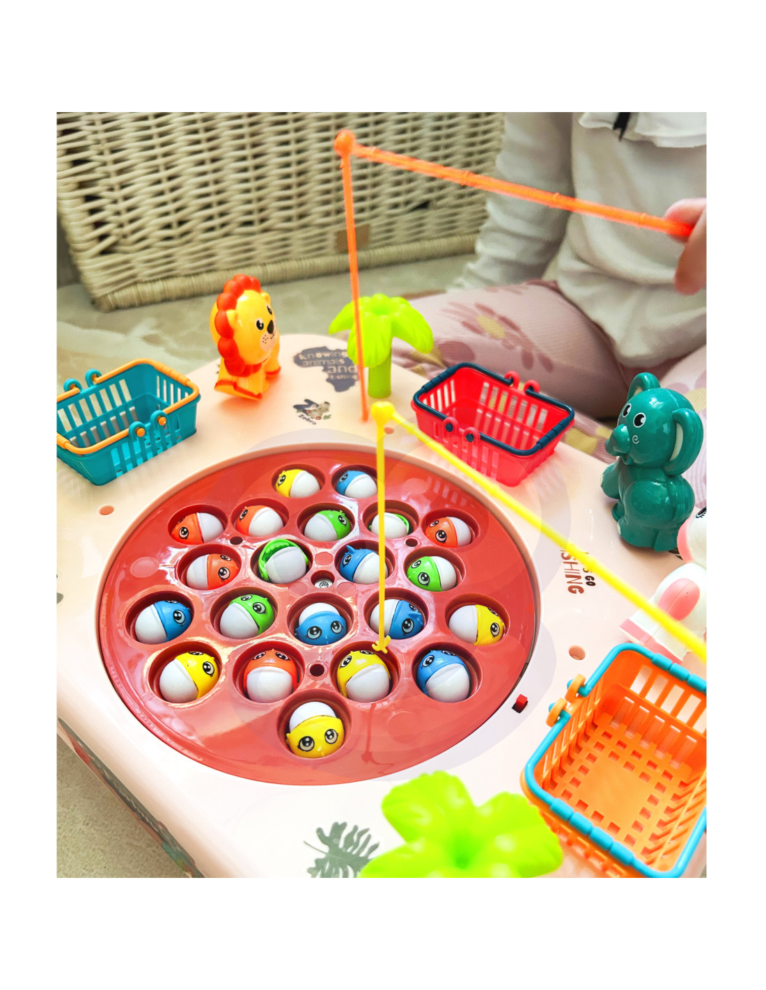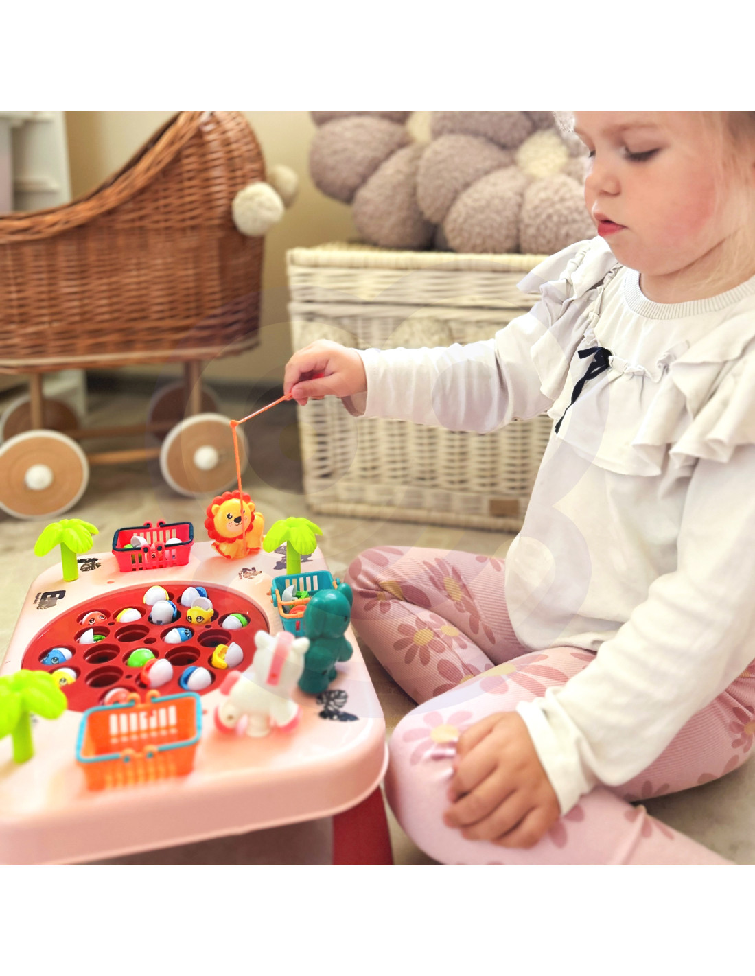 This unique table is a gateway to endless entertainment for the whole family and friends. Constructed from solid material, it's not only durable but also aesthetically pleasing . Its colorful design attracts attention and encourages shared play. The baskets on the sides of the table are not only practical but also a competitive element. Collect as many fish as possible, toss them into the baskets, and get ready to tally your points at the end of the game . The sides of the table also feature adorable animals that are pleasing to the eye. To make catching more challenging, the board containing the fish moves. To make the game more enjoyable, the table plays music and makes sound effects!