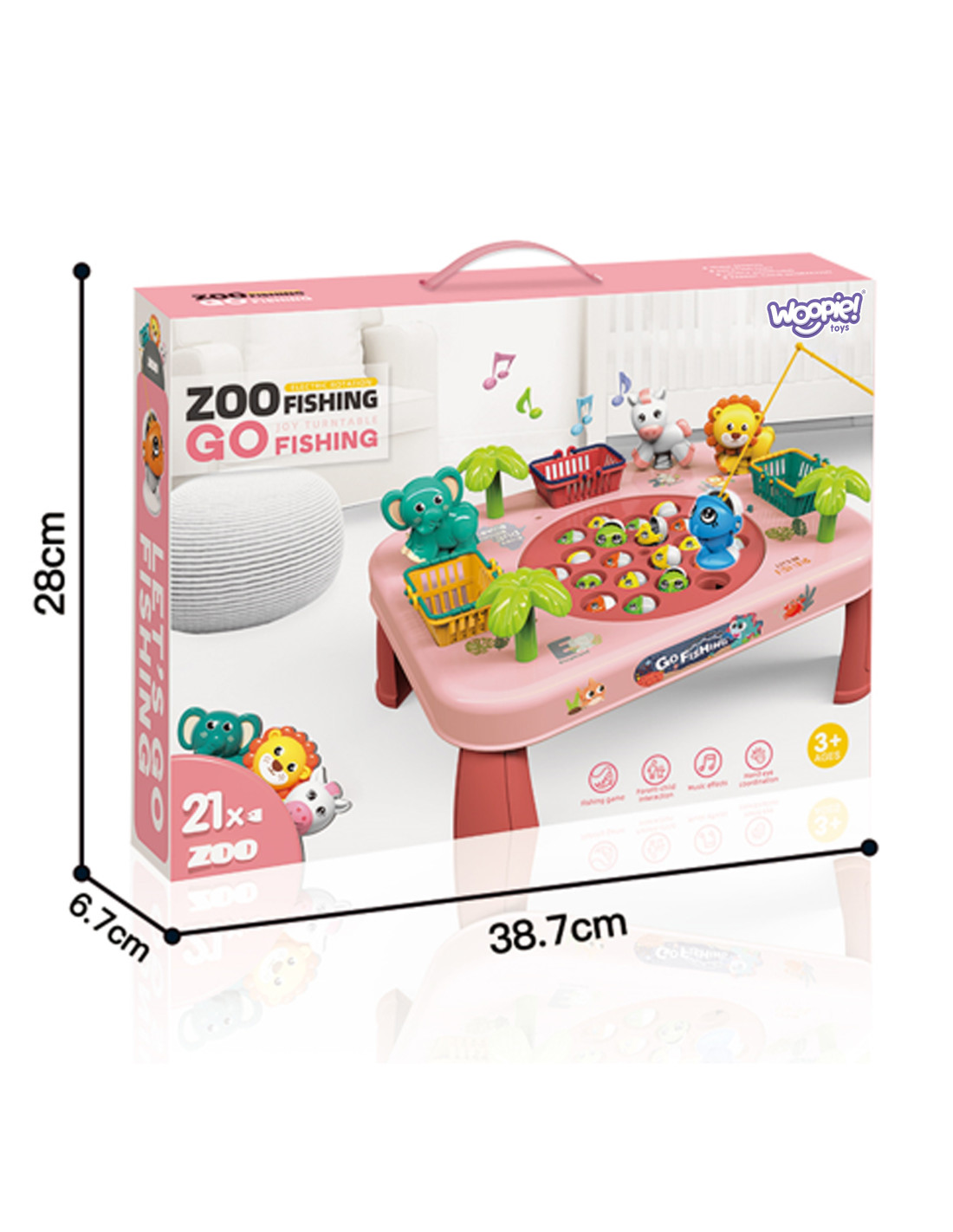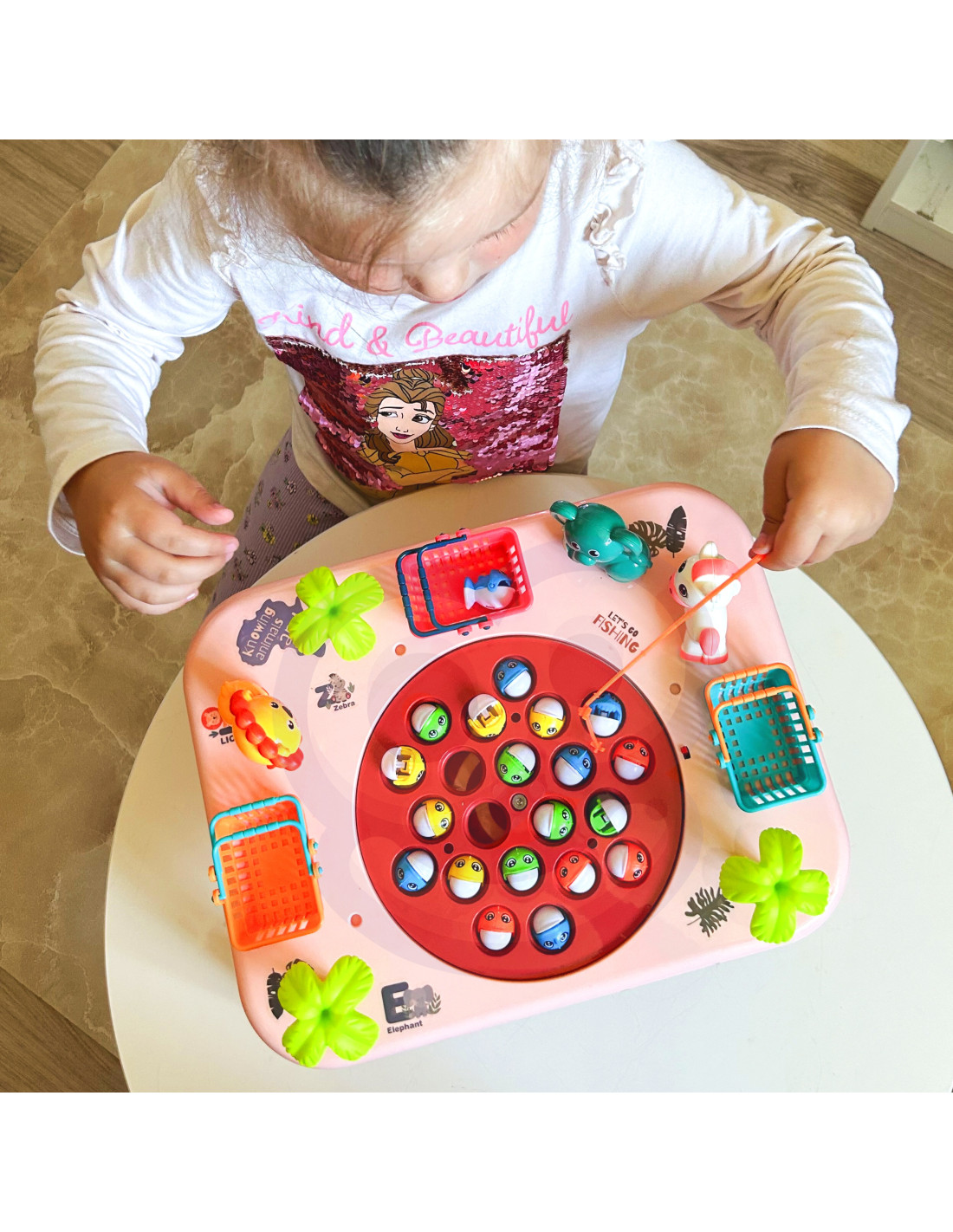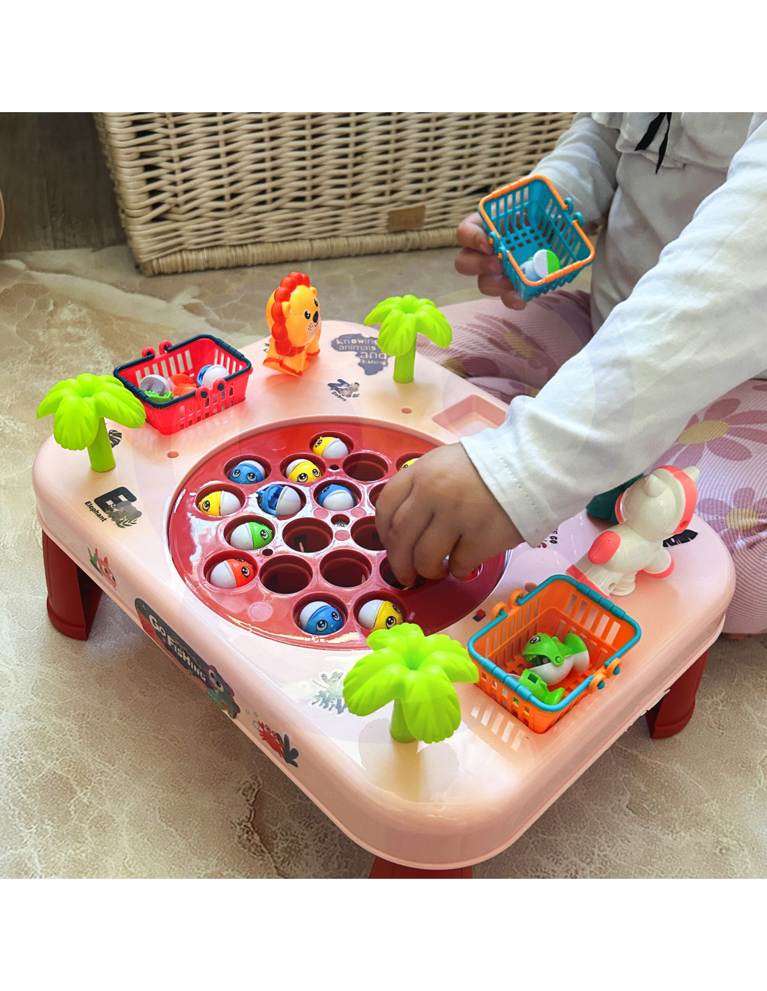 This unique table is a gateway to endless entertainment for the whole family and friends. Constructed from solid material, it's not only durable but also aesthetically pleasing . Its colorful design attracts attention and encourages shared play. The baskets on the sides of the table are not only practical but also a competitive element. Collect as many fish as possible, toss them into the baskets, and get ready to tally your points at the end of the game . The sides of the table also feature adorable animals that are pleasing to the eye. To make catching more challenging, the board containing the fish moves. To make the game more enjoyable, the table plays music and makes sound effects!
