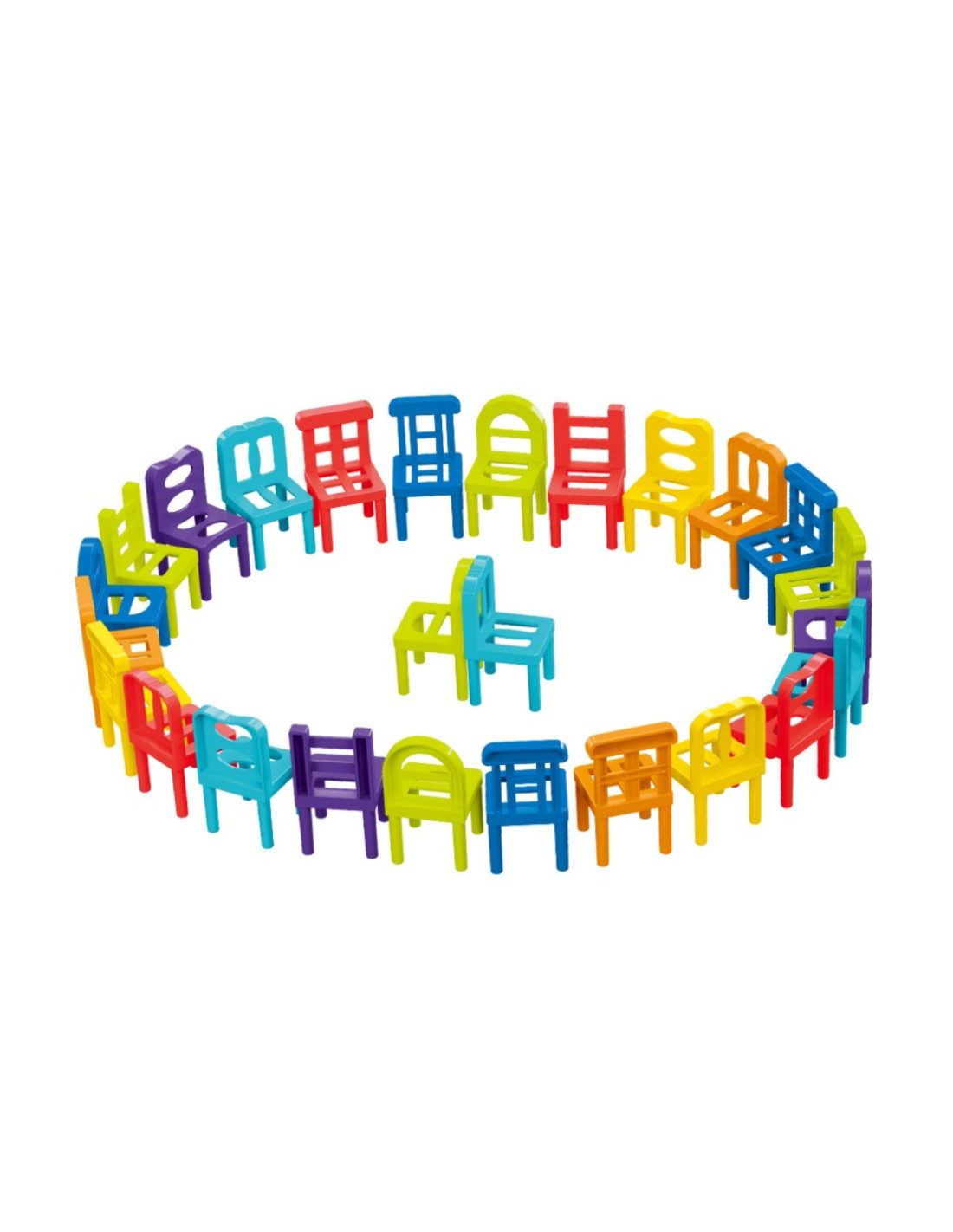 The game involves constructing a tower of chairs. The ultimate goal is to create the highest possible stack of chairs. Players stack chairs one on top of the other, one chair at a time. The player who causes the resulting structure to collapse loses. The game is not at all simple, as the shapes of the chairs don't allow for the construction of the classic, well-known pyramid.