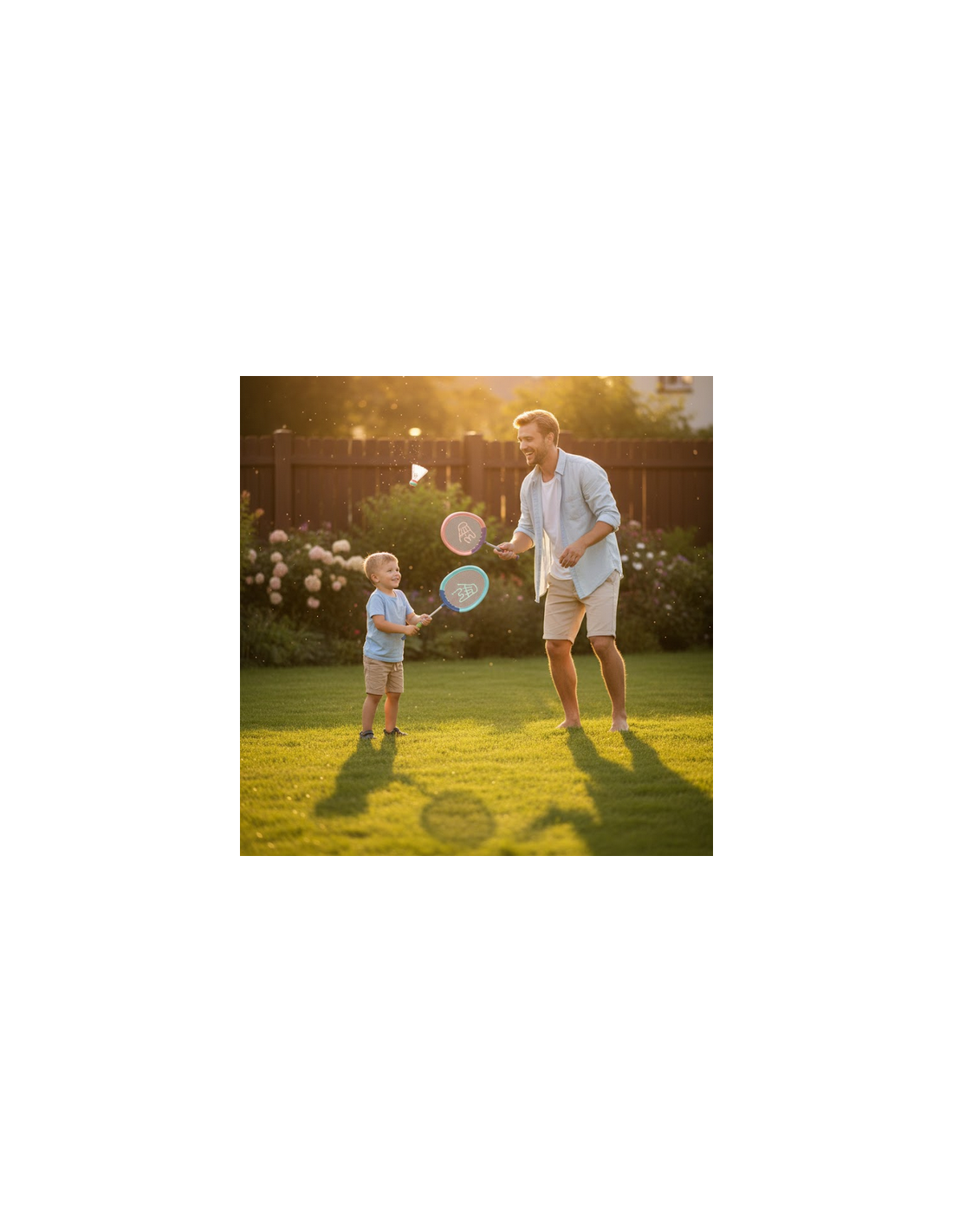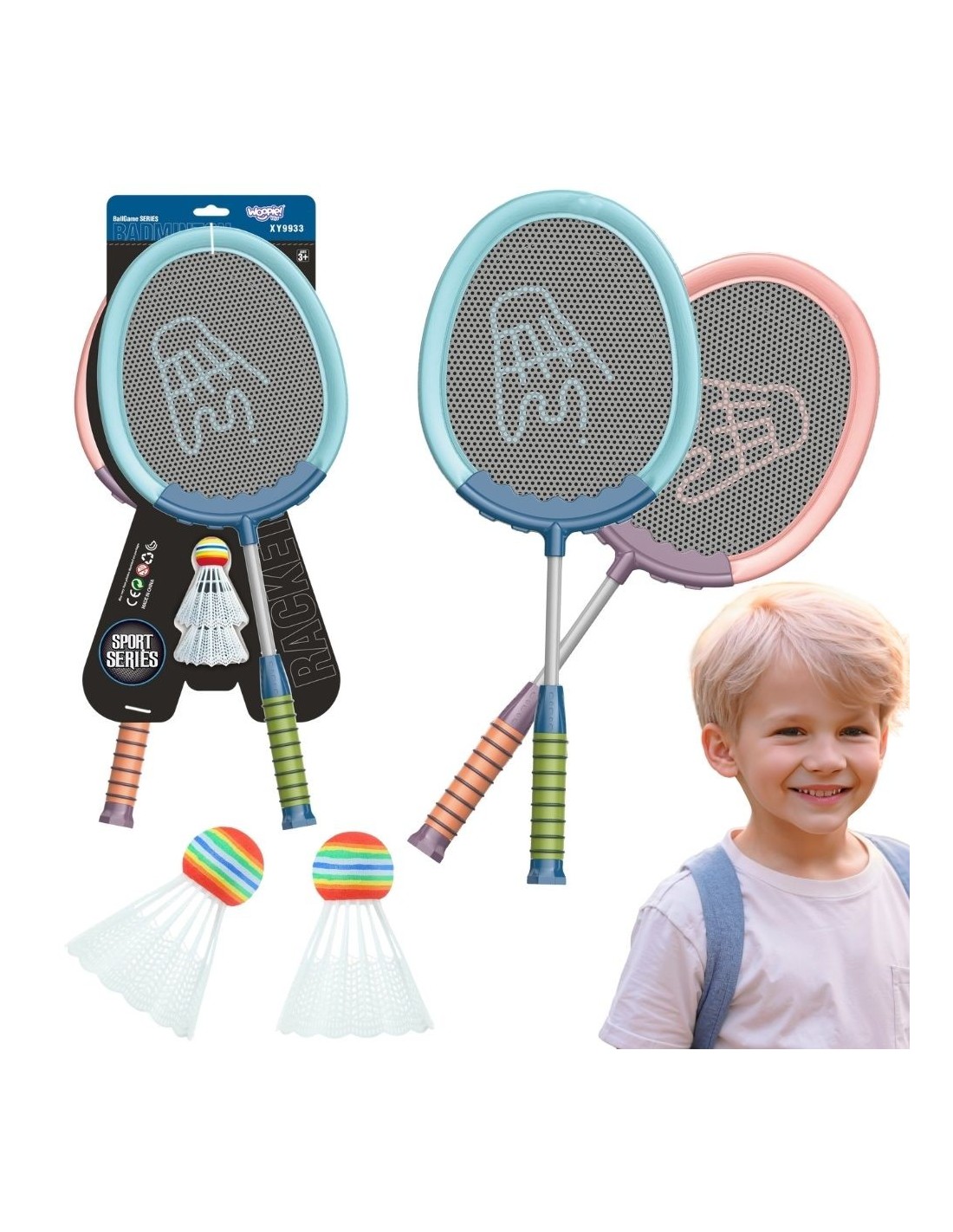 This set of badminton rackets from Woopie will certainly encourage children and adults to spend time actively outdoors. Playing badminton develops children's motor skills , also known as " gross motor skills." The rackets have a comfortable grip, perfect for children's hands , and thanks to the flexible net, they allow for longer strokes .