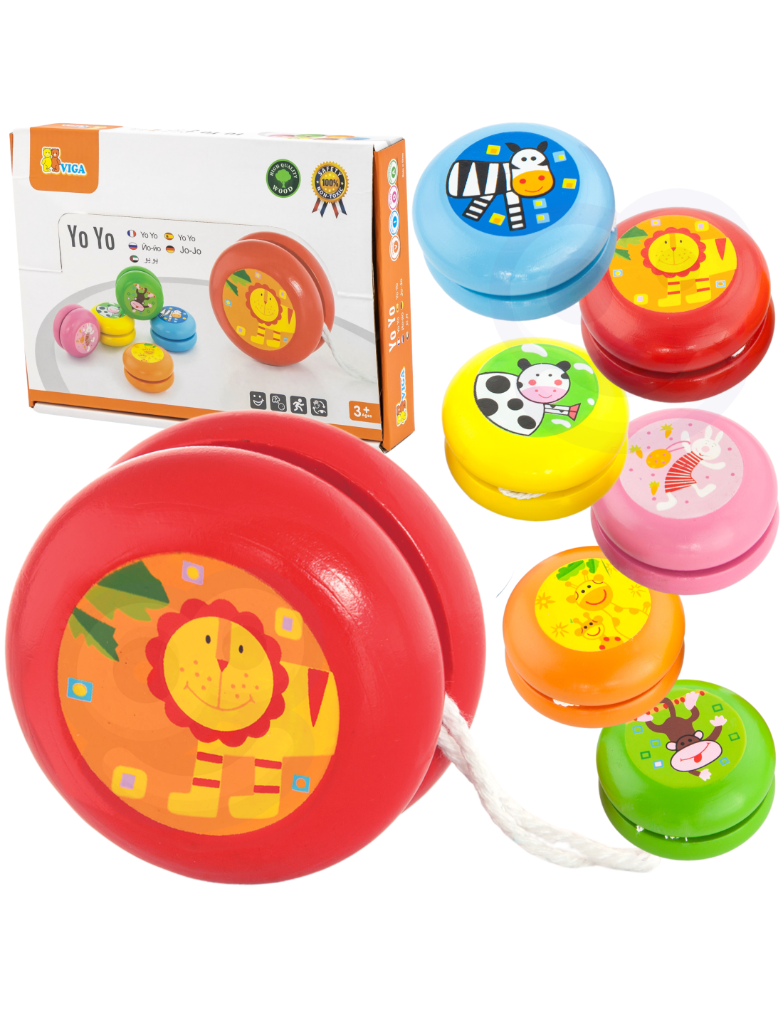 The colorful Viga wooden yo-yo is sure to be a hit with your little one. It's no wonder the yo-yo toy has been known and loved around the world for generations. Not only does it guarantee great, addictive fun, but it also allows for effective exercise in concentration, reflexes, and hand-eye coordination.