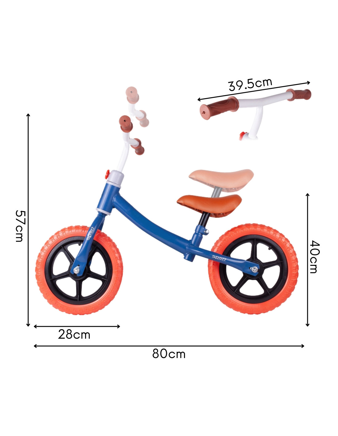 - - Adjustable handlebar (48–57 cm) and saddle (31–40 cm)