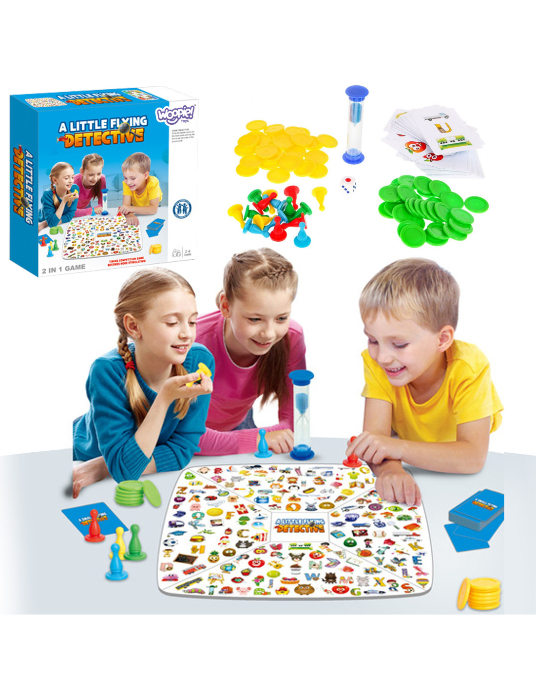 The 2-in-1 Little Detective + Ludo Game from WOOPIE is a set of two board games. Suitable for children aged 4 and up. One side of the board features the Ludo game, while the other side features the Little Detective game. A great way to spend time together.