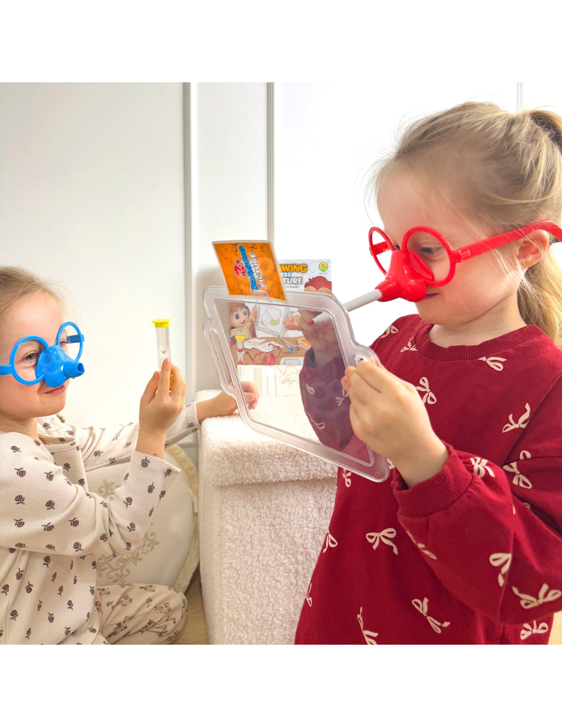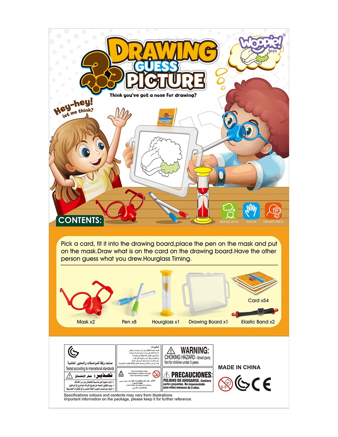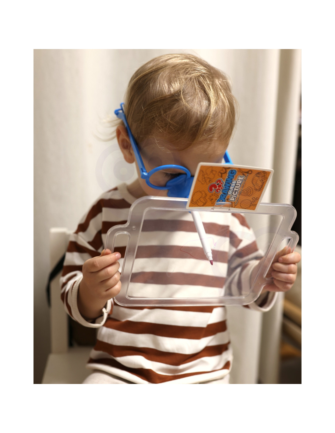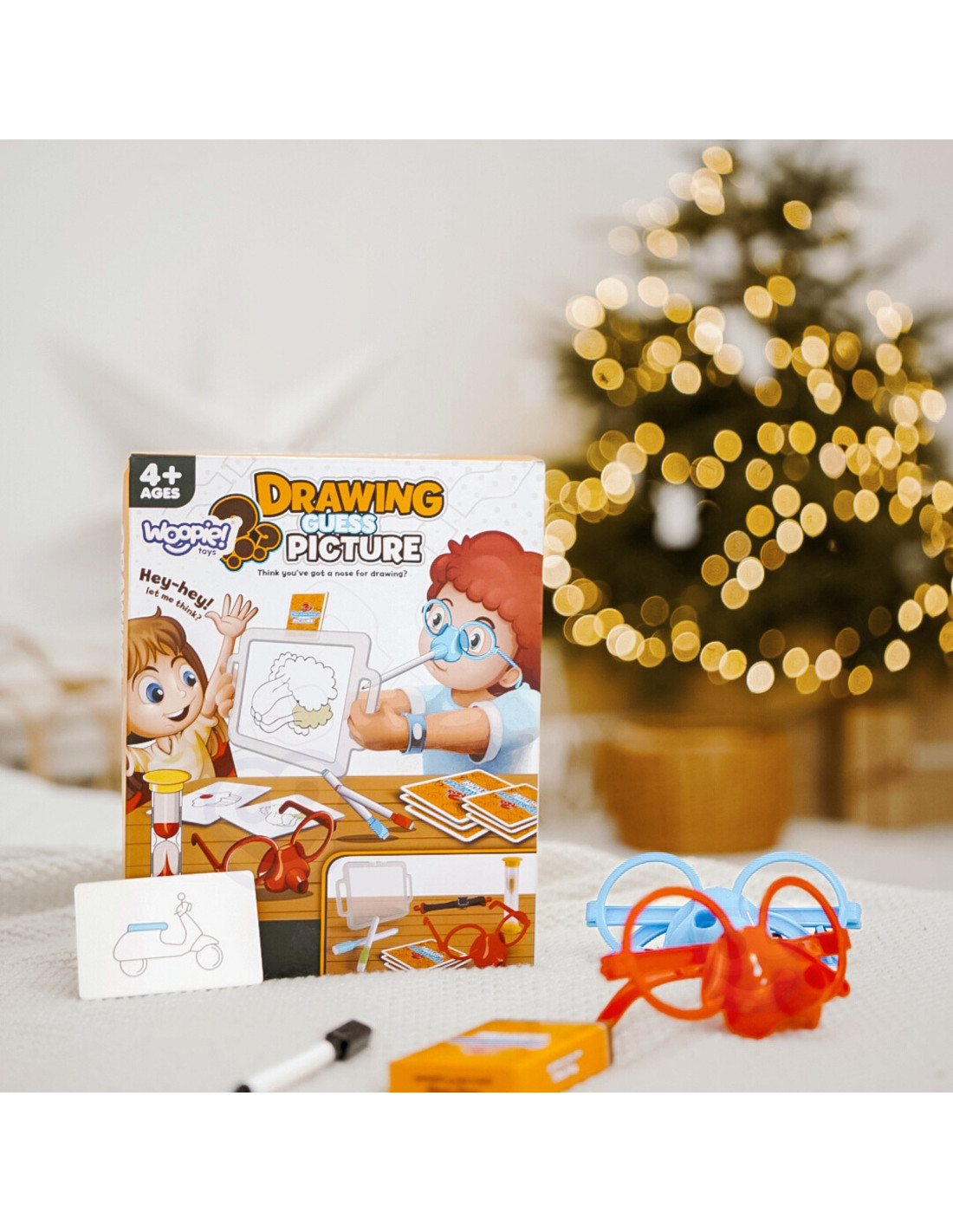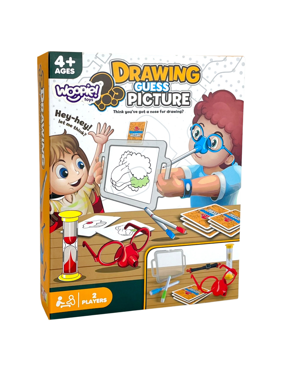 Have you ever imagined drawing solely with your nose? Thanks to the amazing game "Draw and Guess the Picture" from WOOPIE, you'll be able to do just that, because it's your job! Put on special glasses with a marker, and draw the drawn picture on the board in front of you – it's the only way for your team to guess the words. Time is short, so hurry, because the hourglass is ticking!