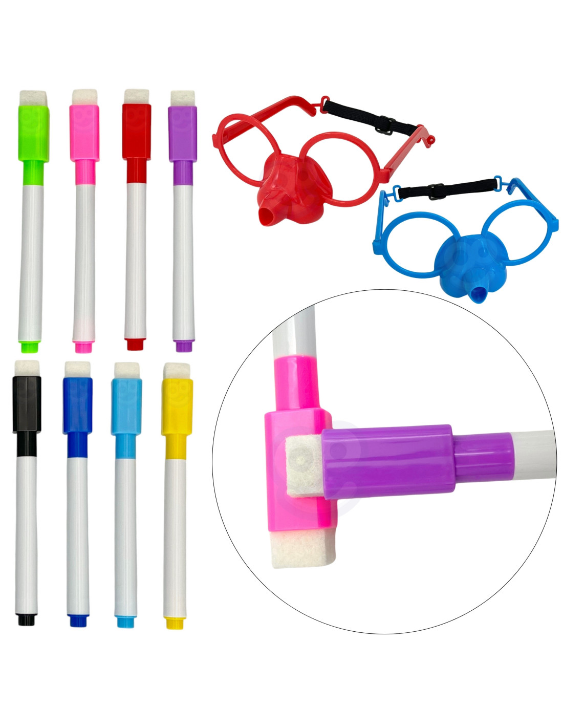 - - Glasses with a place for a marker and headbands that adjust the size of the glasses to the size of your head