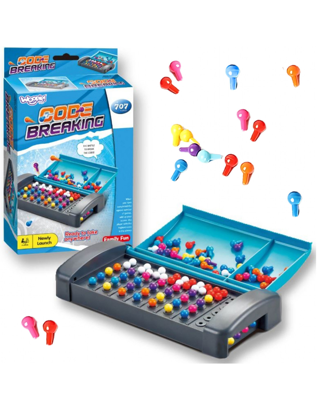 Woopie's Code Breaker is a handy version of the classic puzzle game that fits in any bag. Perfect for both home and travel, it provides great entertainment and develops strategic skills. Players must use their wits and deduction to guess their opponent's secret code. The compact design and convenient closure ensure the game is always ready to use.