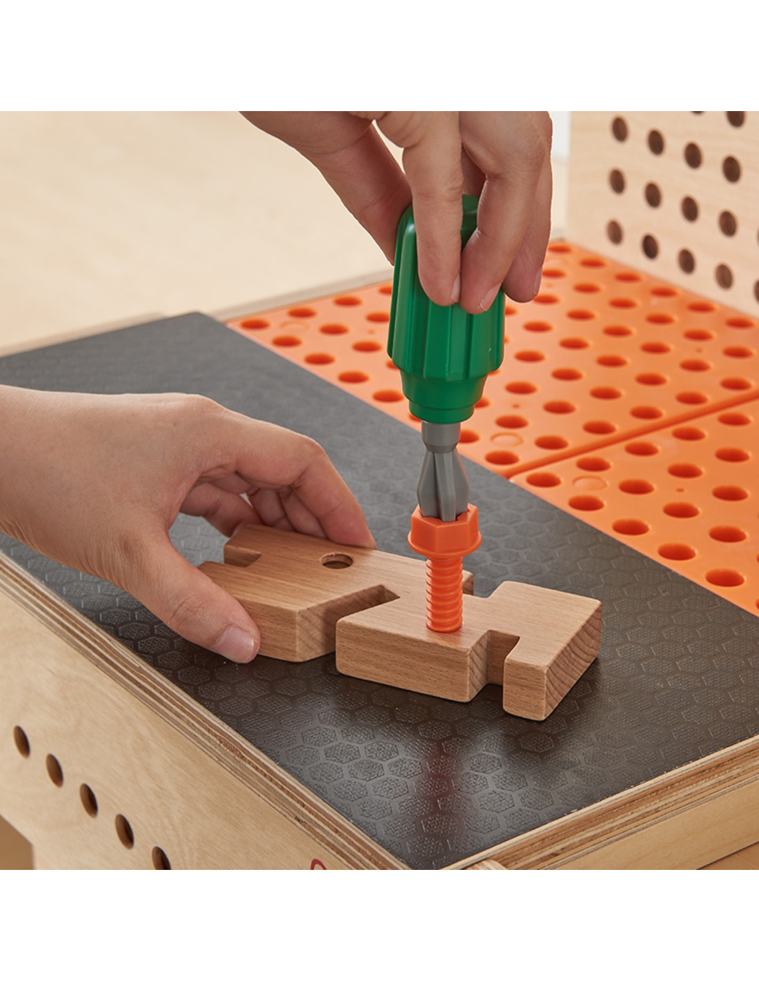 - - a work surface with holes, allowing you to freely create your own structures, systems and experiments.