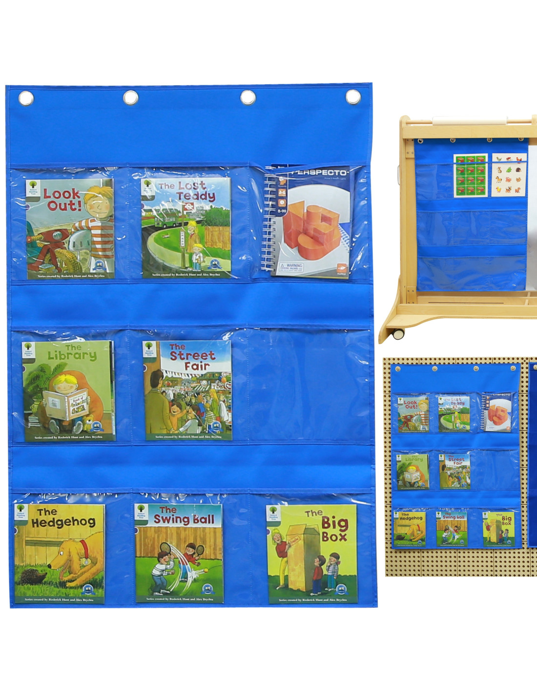 - - 3 rows with pockets for displaying teaching aids. Examples of uses include arranging photos or books.