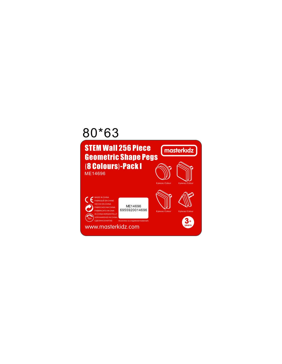 - - Colored pegs in 4 different geometric shapes and 8 colors.