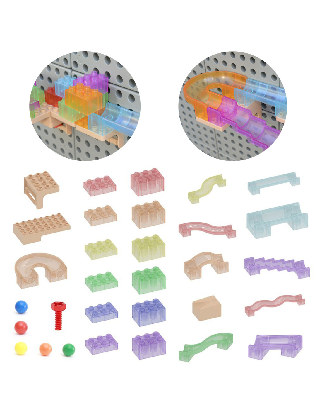 • - It's the best ball track toy with which children can construct paths and tracks by adding different cubes, direction changers and other movement mechanisms