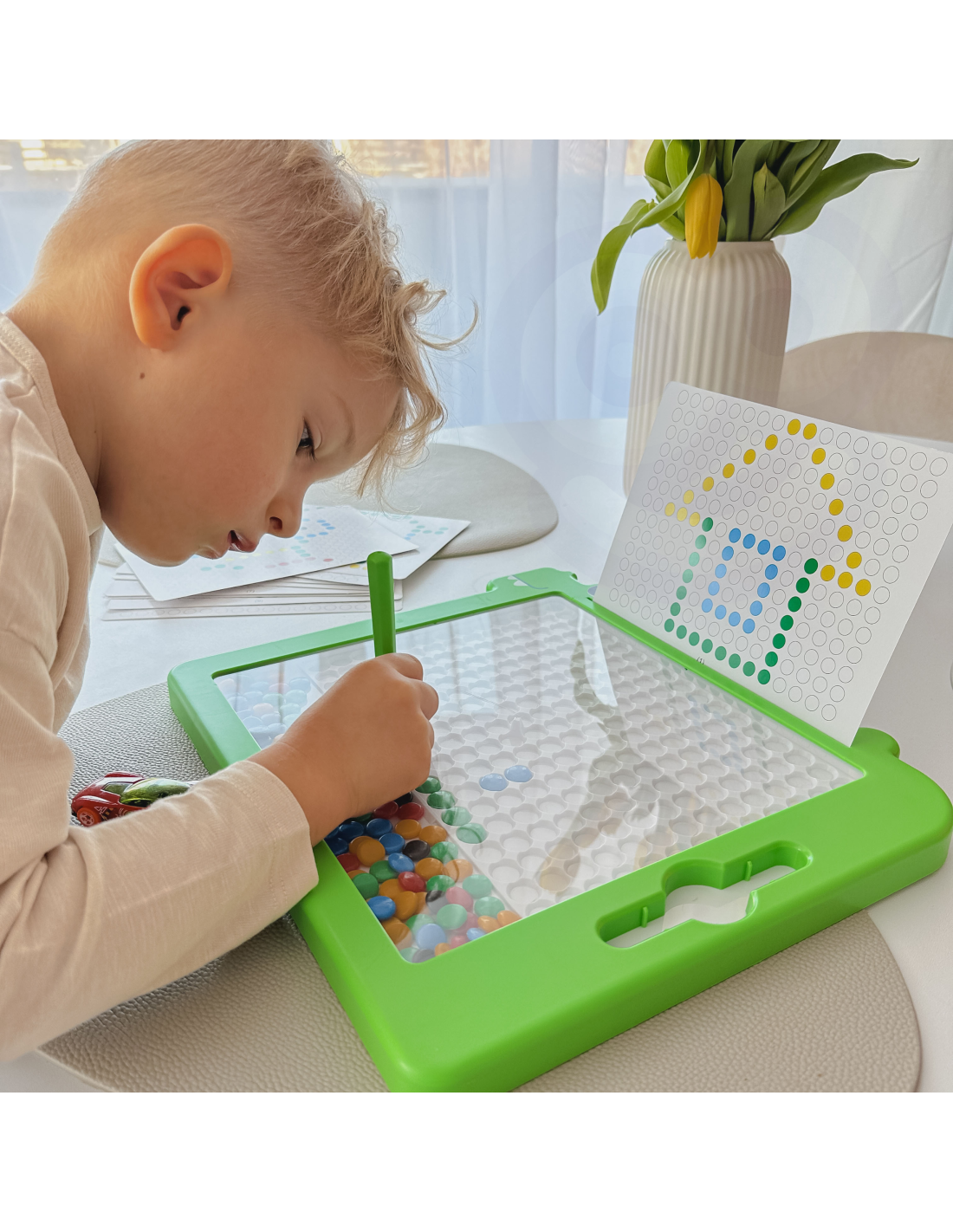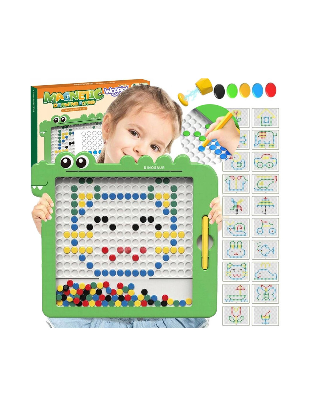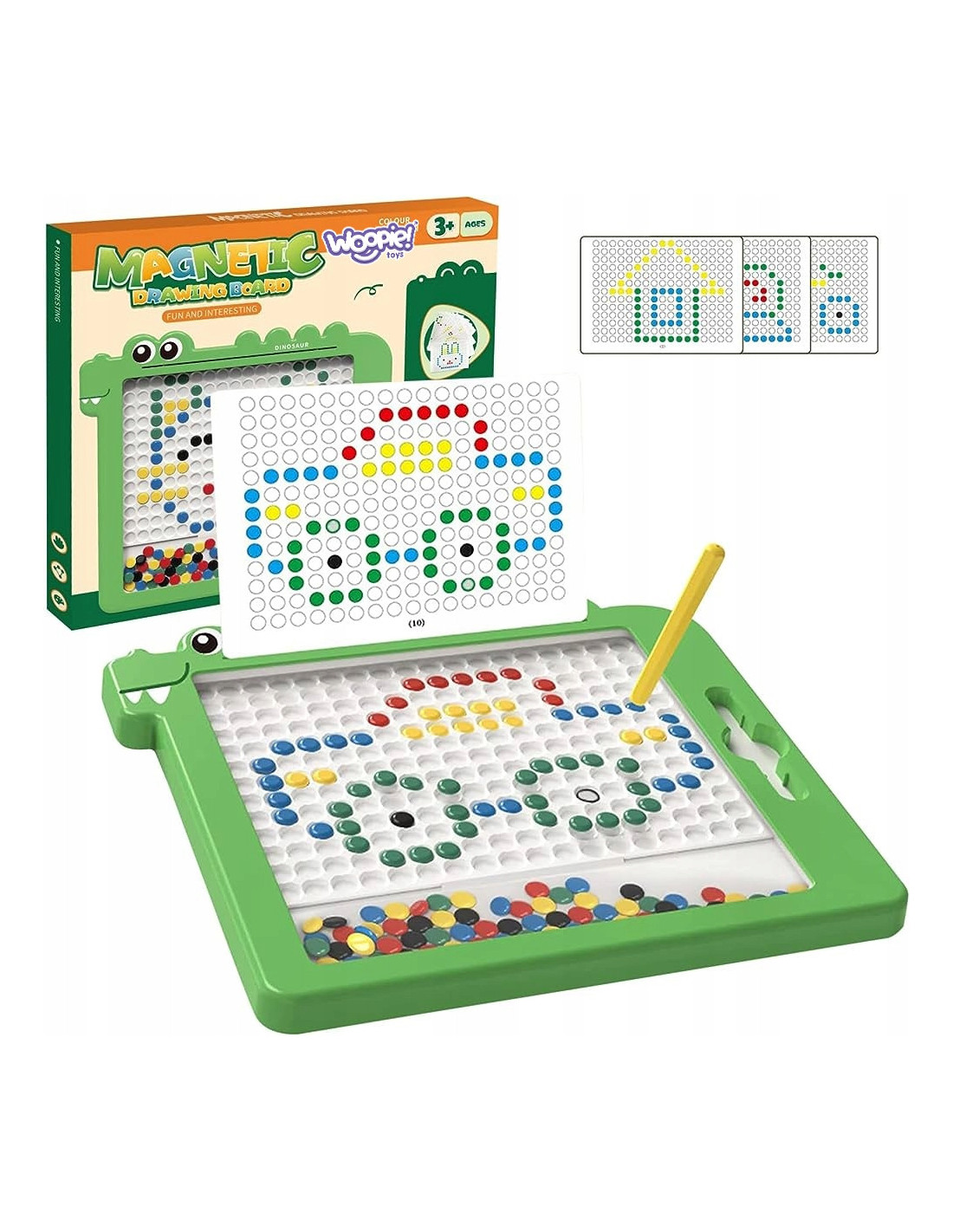 The MagPad Magnetic Board from WOOPIE opens the door to a world of creativity and education for your child. This unique board allows your child to create unique patterns and mosaics . In addition to the board itself, the set includes a magnetic marker and 110 magnetic buttons for creation. The only limits are their imagination and creativity – your child can freely create patterns based on their own ideas. The buttons are strong and durable , and assembly is intuitive and simple . This set is not only fun but also an excellent tool for learning and developing manual skills, concentration, and imagination.