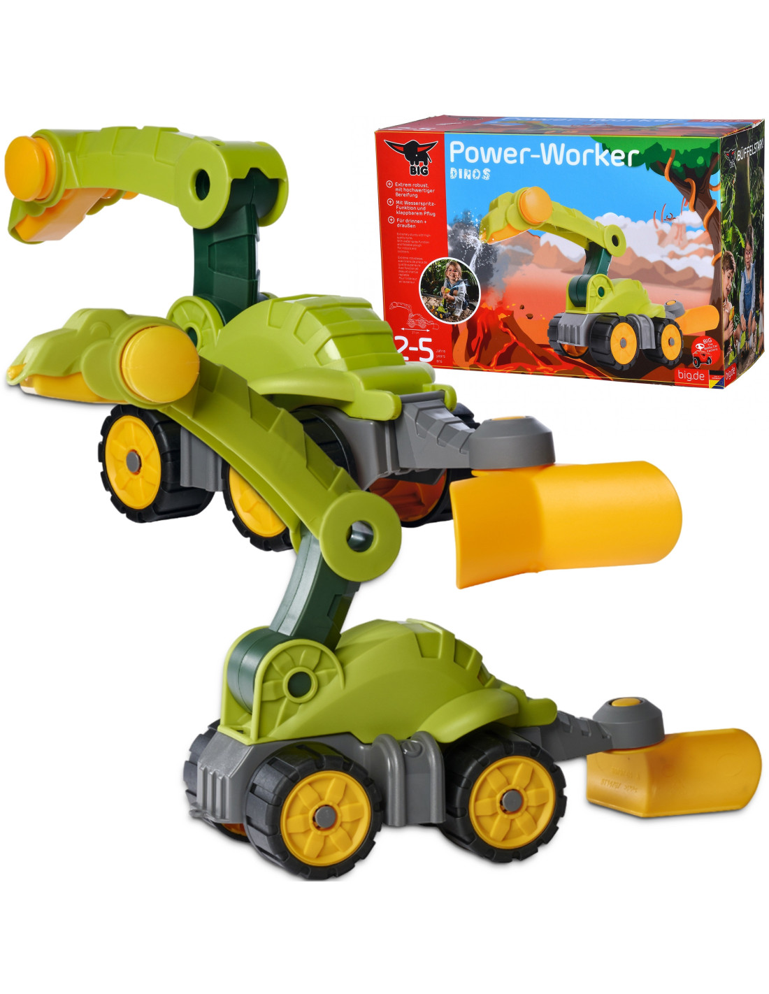 The Power Worker Dinosaur Plow and Sprinkler from the renowned BIG brand is a great toy for playtime at home and in the garden. With a water syringe in the dinosaur's head and a foldable plow at the back, fun is guaranteed! Power Workers are made of high-quality plastic, making them particularly easy to clean. A special feature are the durable wheels made of a softer plastic , which come standard with all BIG Power Workers. They leave no marks and are therefore ideal for playtime in the children's room and outdoors.
