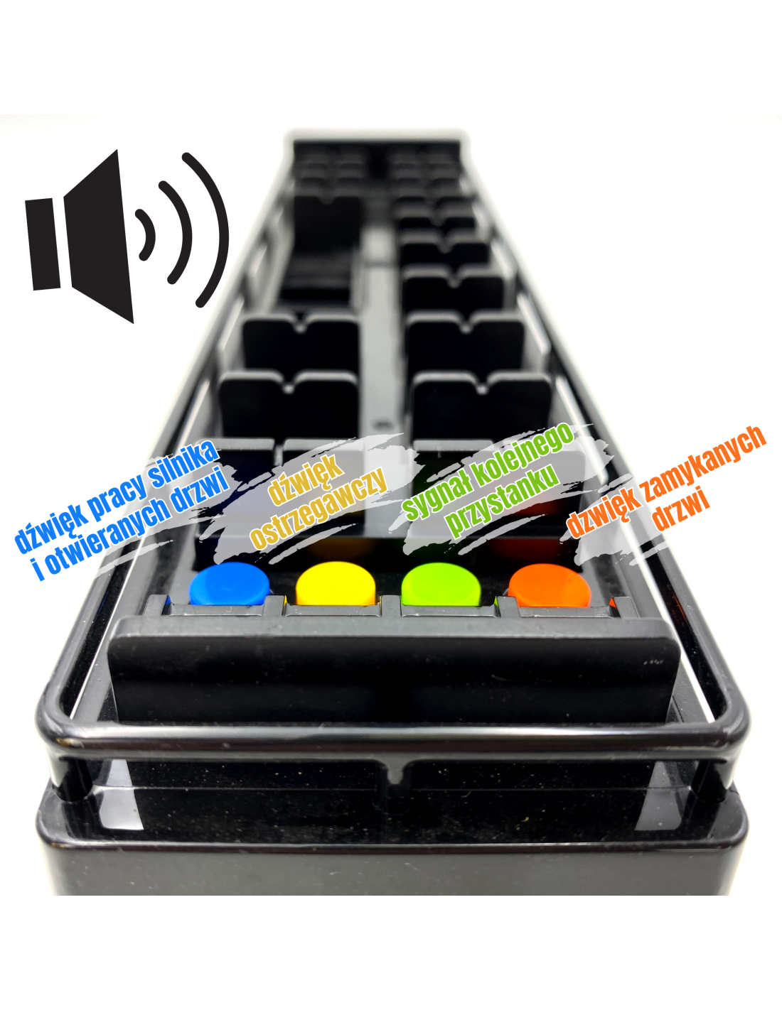- - blue button - sound of the engine running and doors opening,