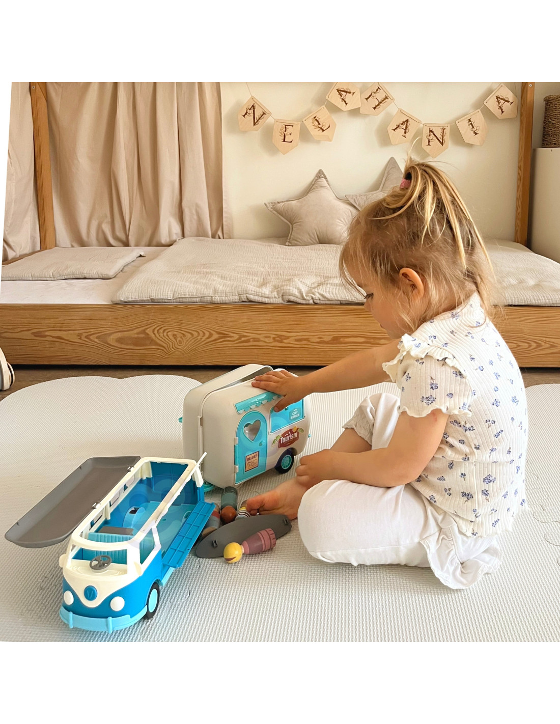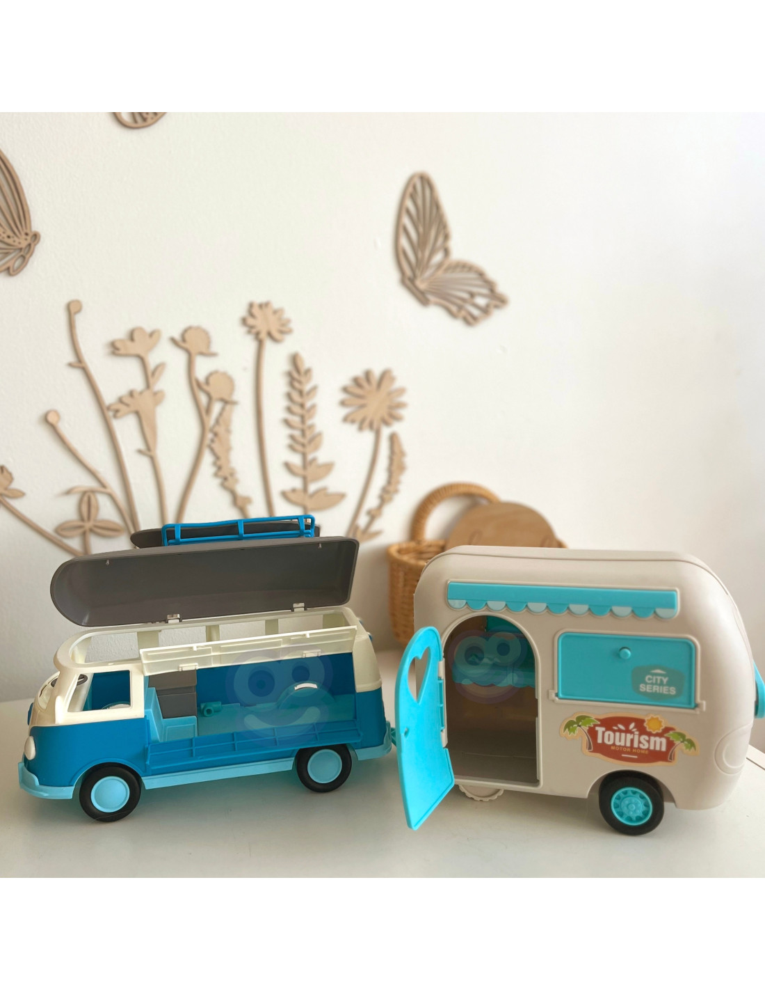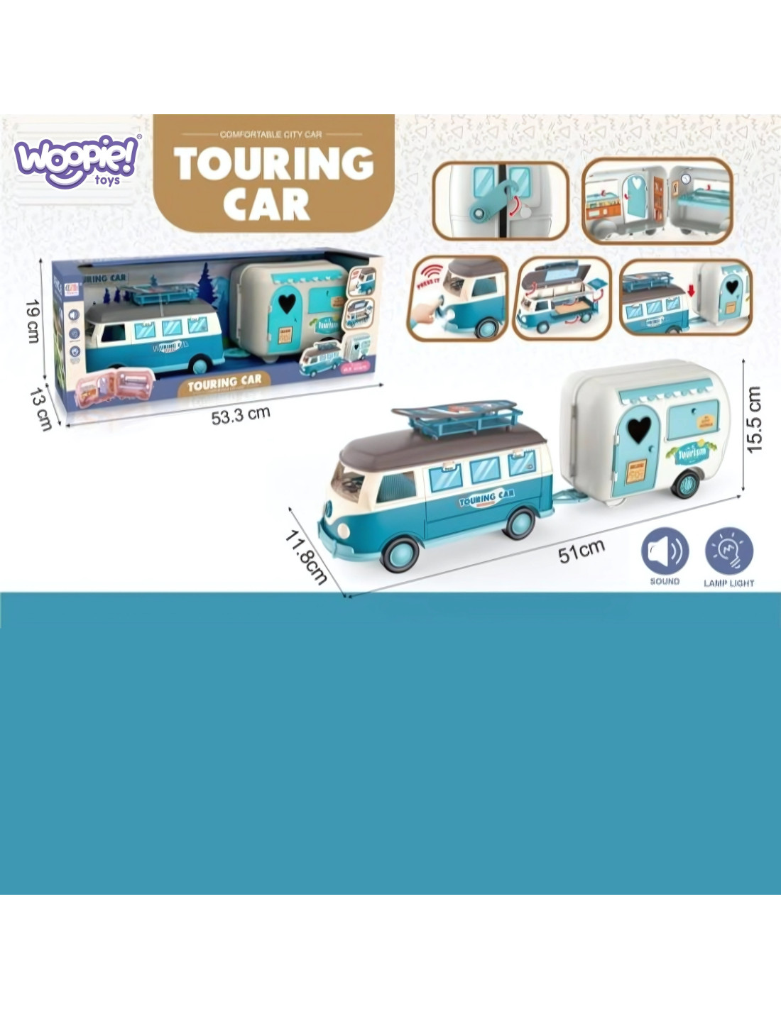 Open the door to a world of incredible adventures with the unique Woopie camper trailer! This colorful, retro -style toy is perfect for little explorers who love creative play. Featuring opening elements, a realistic interior, and light and sound effects, this camper trailer will make every trip unforgettable. It's a great gift idea that will delight any child!