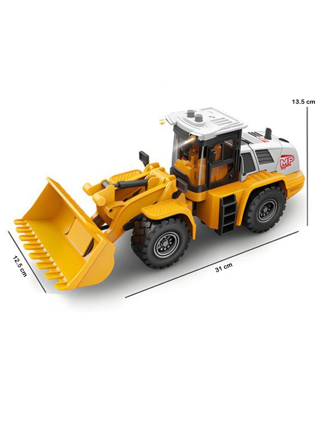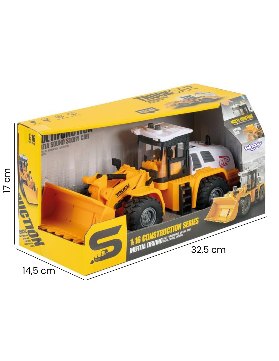 The 1:16 Construction Loader from Woopie lets your child take on the role of operating a real construction machine! This loader is a realistically reproduced toy that will delight any young heavy vehicle enthusiast. Its realistic design, moving parts, and light and sound effects will turn every playtime into a true construction adventure. Its robust construction and numerous functions ensure hours of creative play.