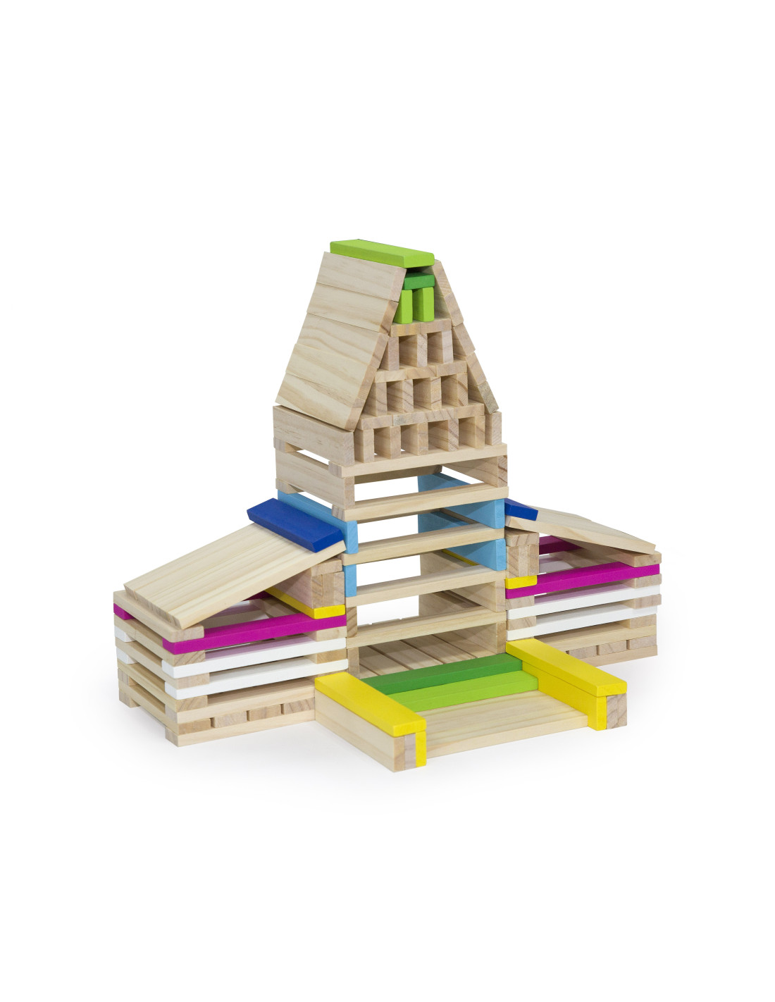 The set contains as many as 250 elements, from which you can create various versions of colorful buildings, and the instruction booklet that comes with the set will help you with this.