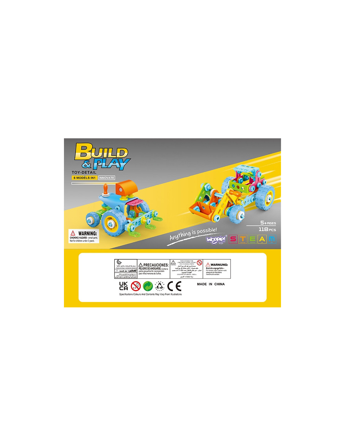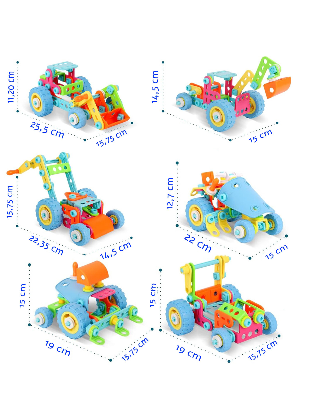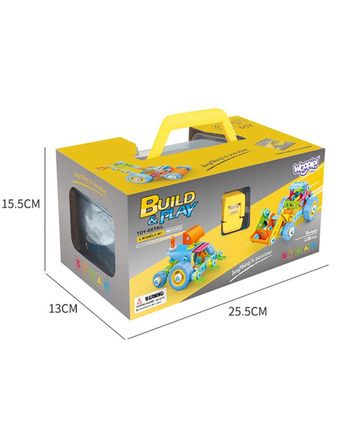 The 6-in-1 Vehicle Construction Set from WOOPIE is a great way to engage your child in creative play – it'll keep them occupied for hours and unleash a world of creative ideas! Spark your child's imagination and manual dexterity with these unique building blocks! The set contains 118 pieces that will allow you to create a variety of vehicles , including a tractor, excavator , and go-karts . Regardless of gender, this toy is perfect for both boys and girls. Developing creativity and manual dexterity , it allows every child to explore the world of construction and design in a way that brings immense satisfaction and joy.