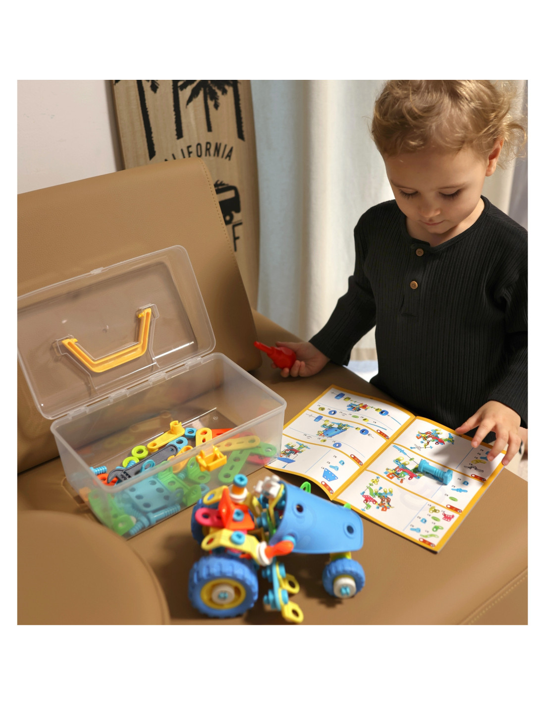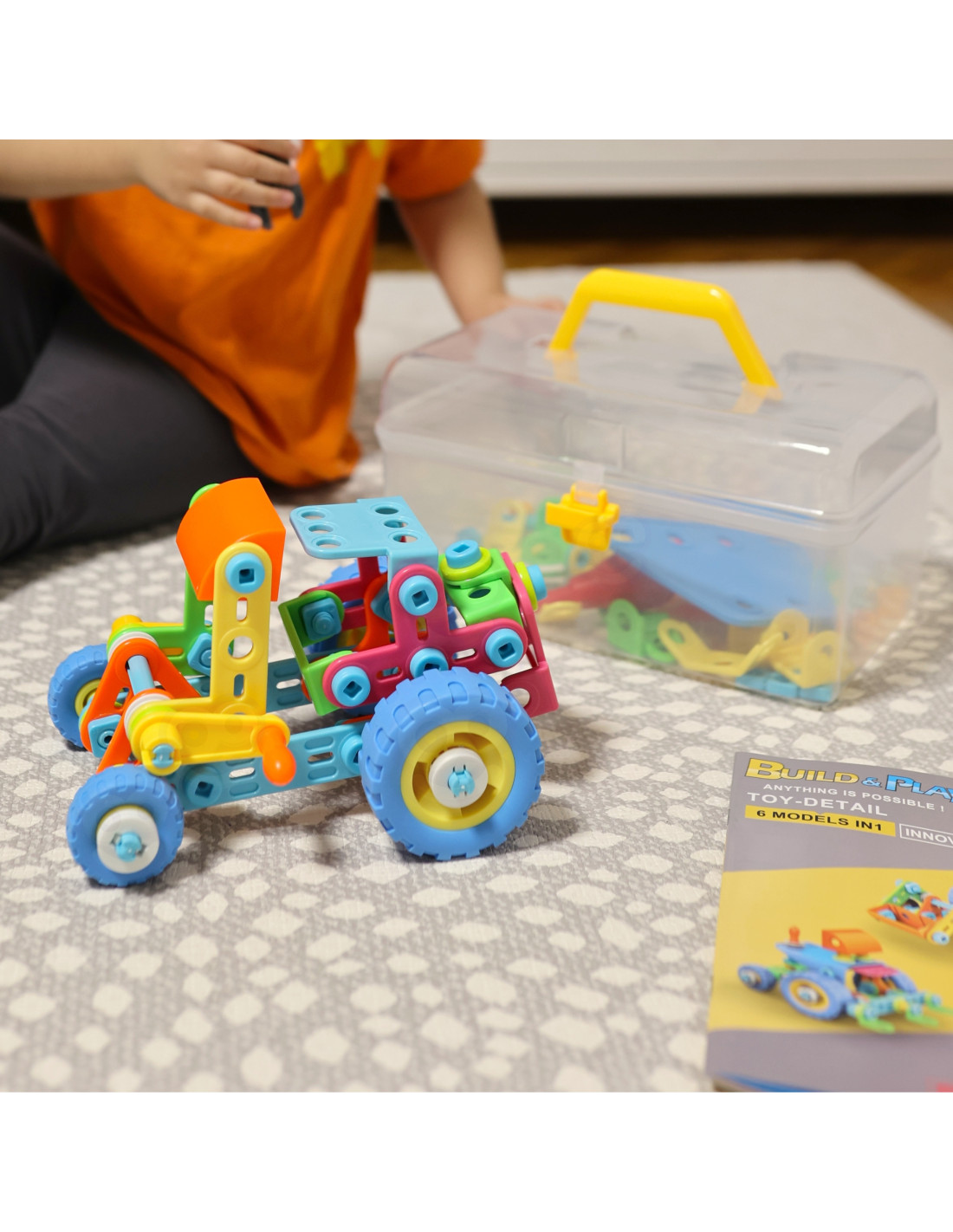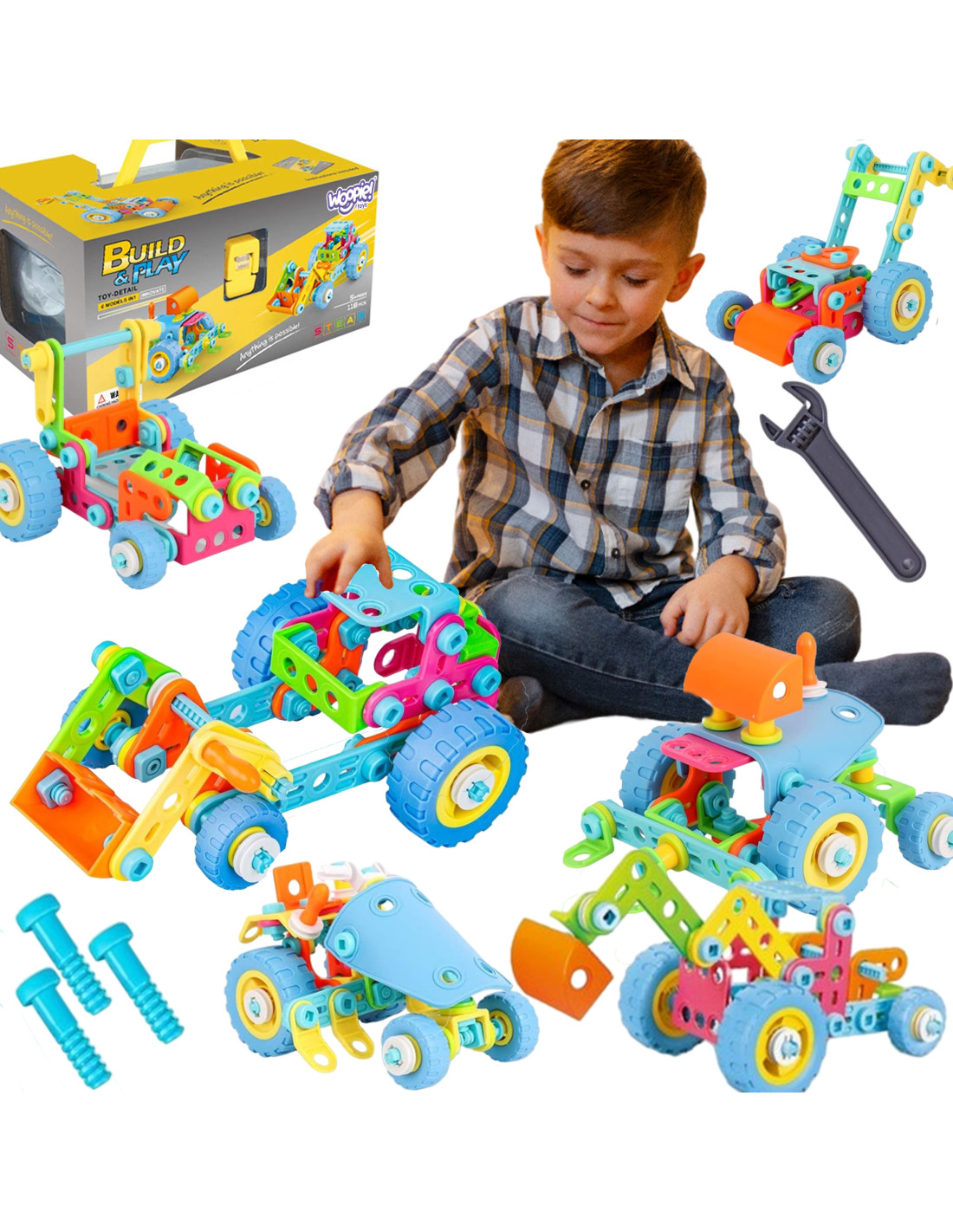 The 6-in-1 Vehicle Construction Set from WOOPIE is a great way to engage your child in creative play – it'll keep them occupied for hours and unleash a world of creative ideas! Spark your child's imagination and manual dexterity with these unique building blocks! The set contains 118 pieces that will allow you to create a variety of vehicles , including a tractor, excavator , and go-karts . Regardless of gender, this toy is perfect for both boys and girls. Developing creativity and manual dexterity , it allows every child to explore the world of construction and design in a way that brings immense satisfaction and joy.