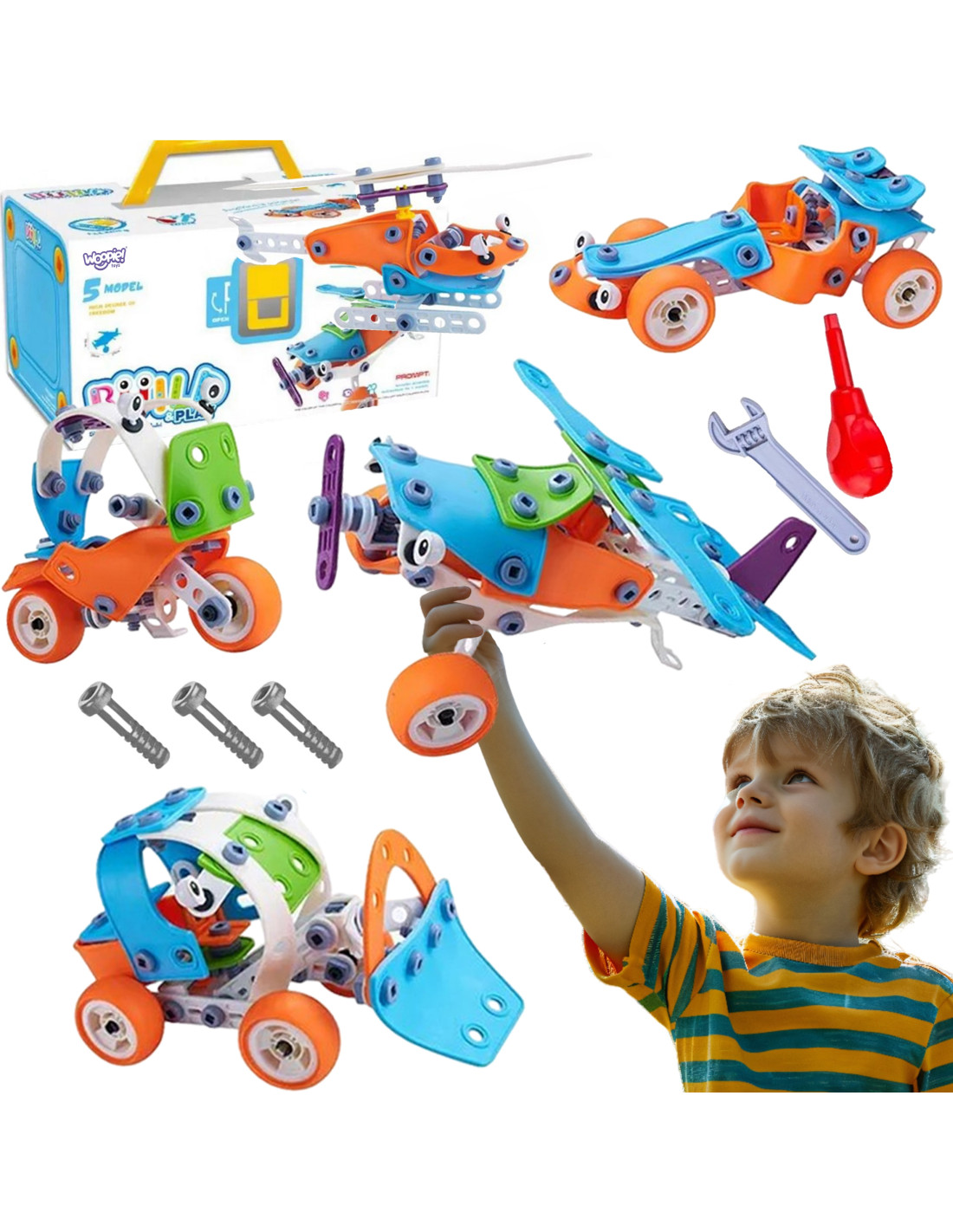 The 5-in-1 Vehicle Construction Set from WOOPIE is a great way to engage in creative play – it'll keep you occupied for hours and unleash a world of creative ideas! Spark your child's imagination and dexterity with these unique, flexible building blocks! The set contains 118 pieces that will allow you to create a variety of vehicles , including a bulldozer, helicopter, airplane, and go-kart . Developing creativity and dexterity , it allows every child to explore the world of construction and design in a way that delivers immense satisfaction and joy.