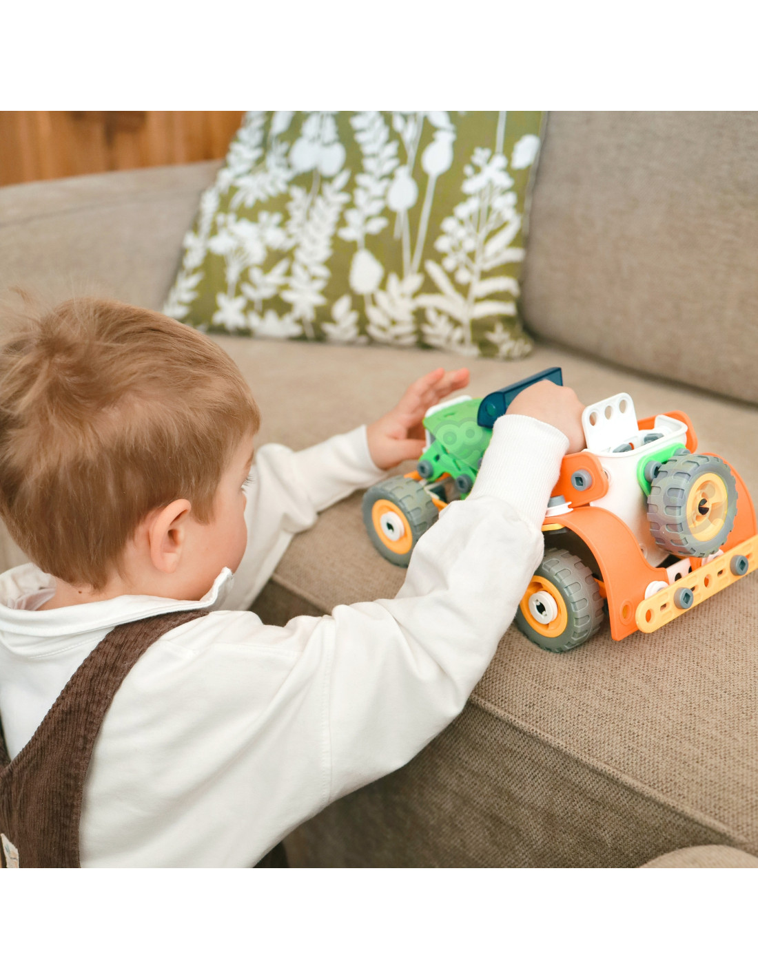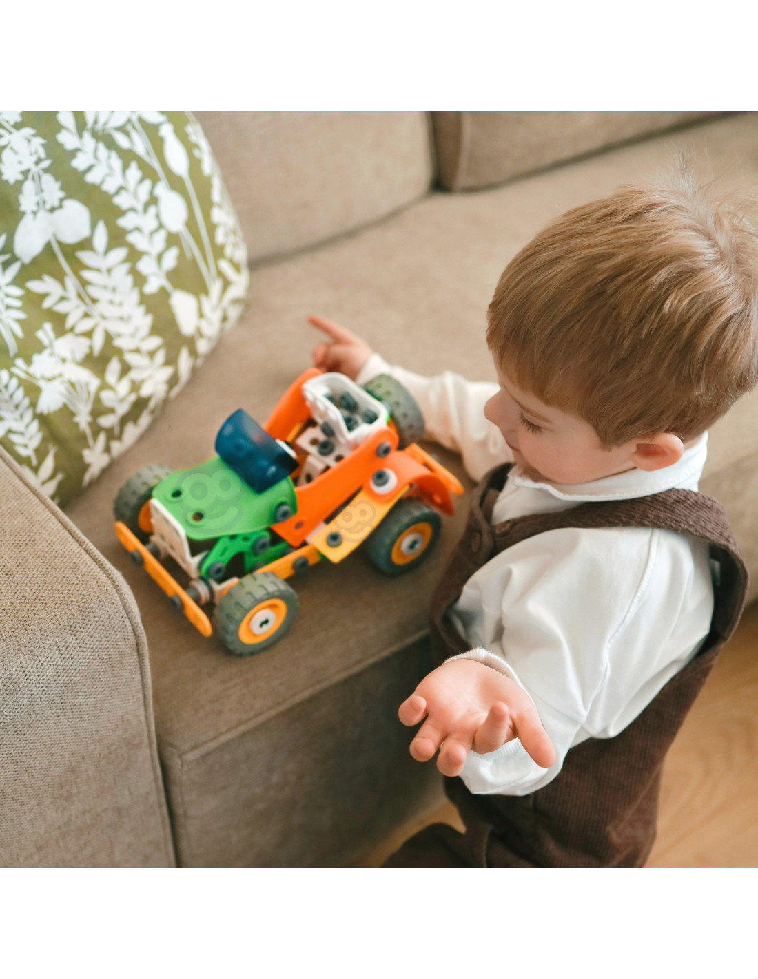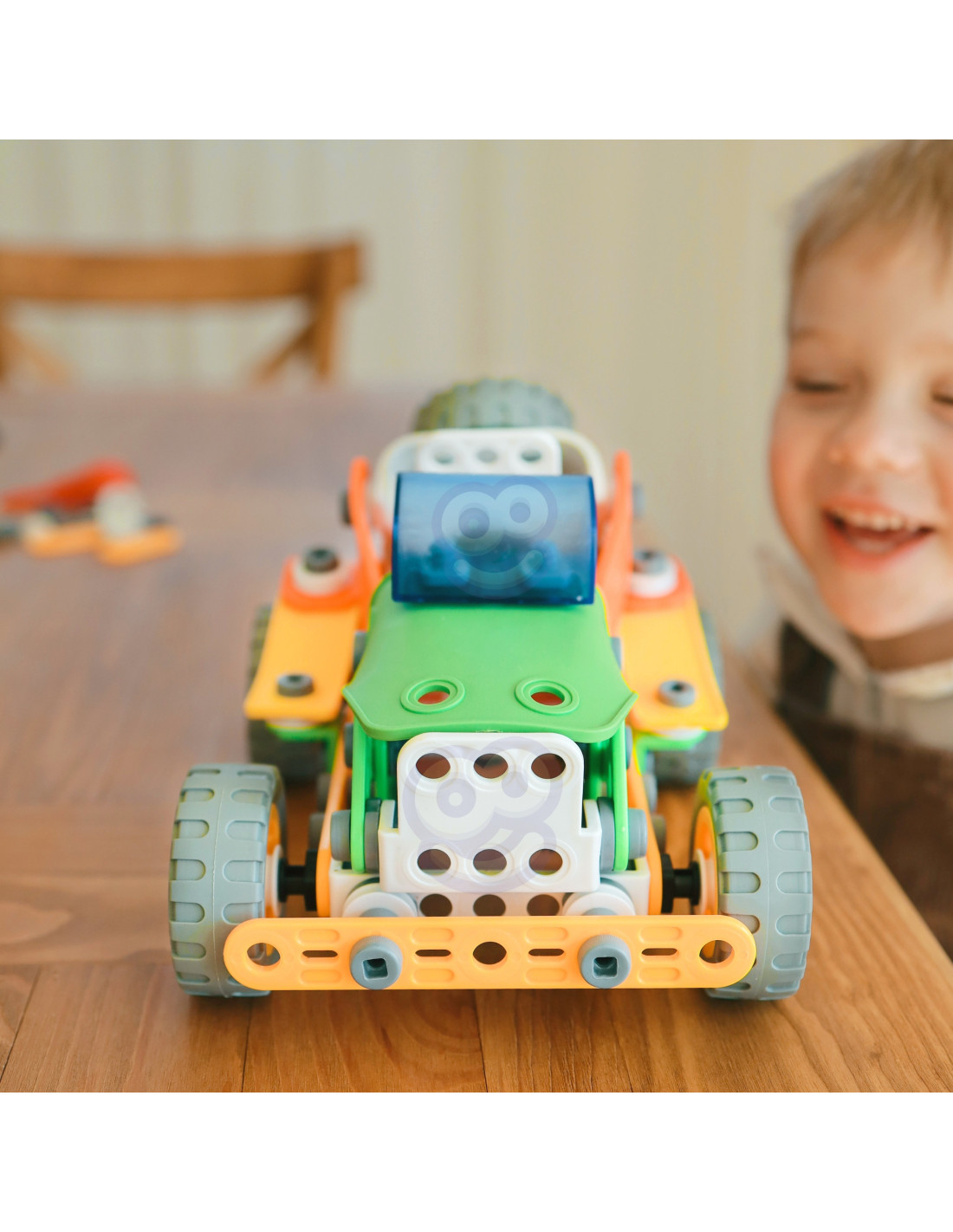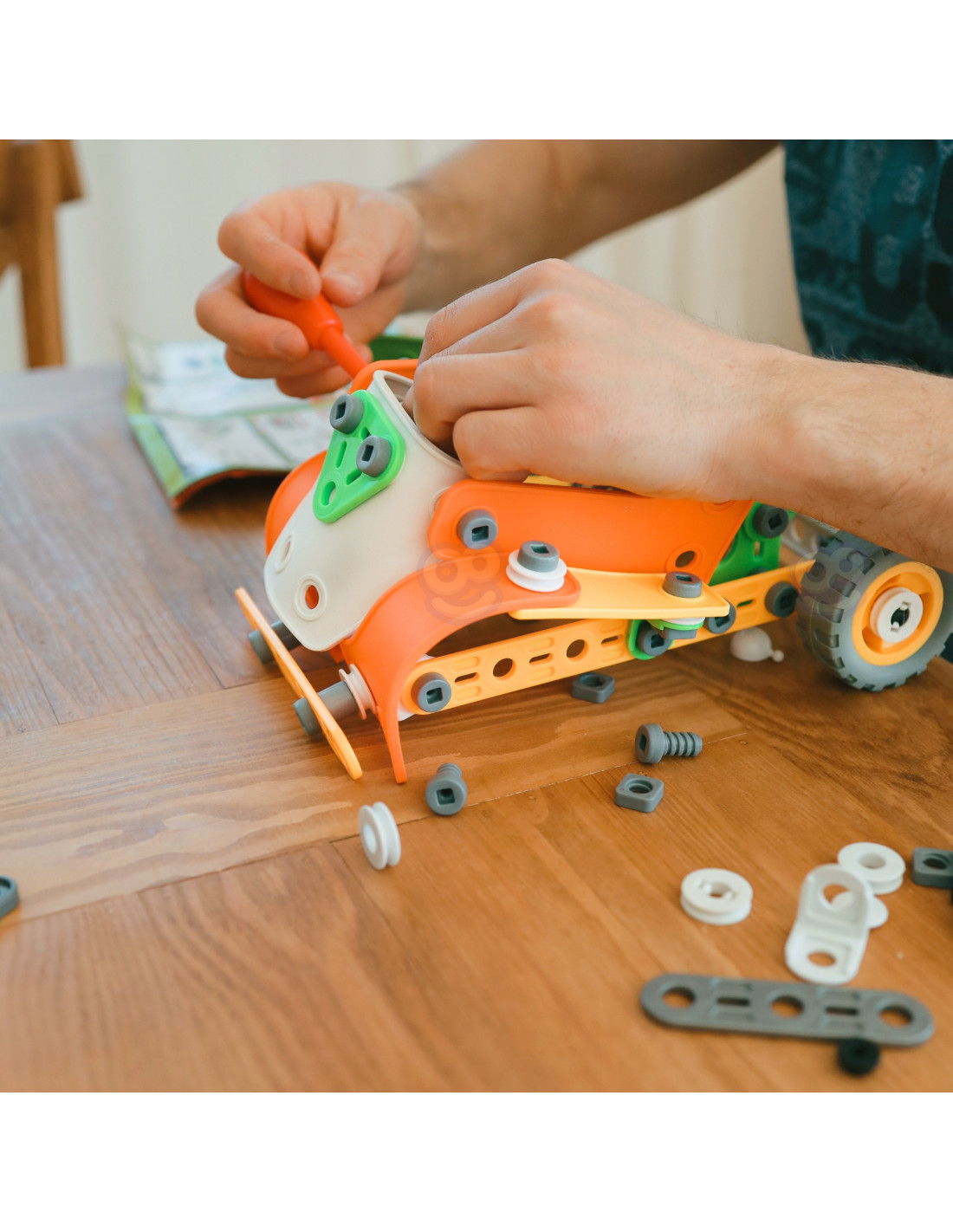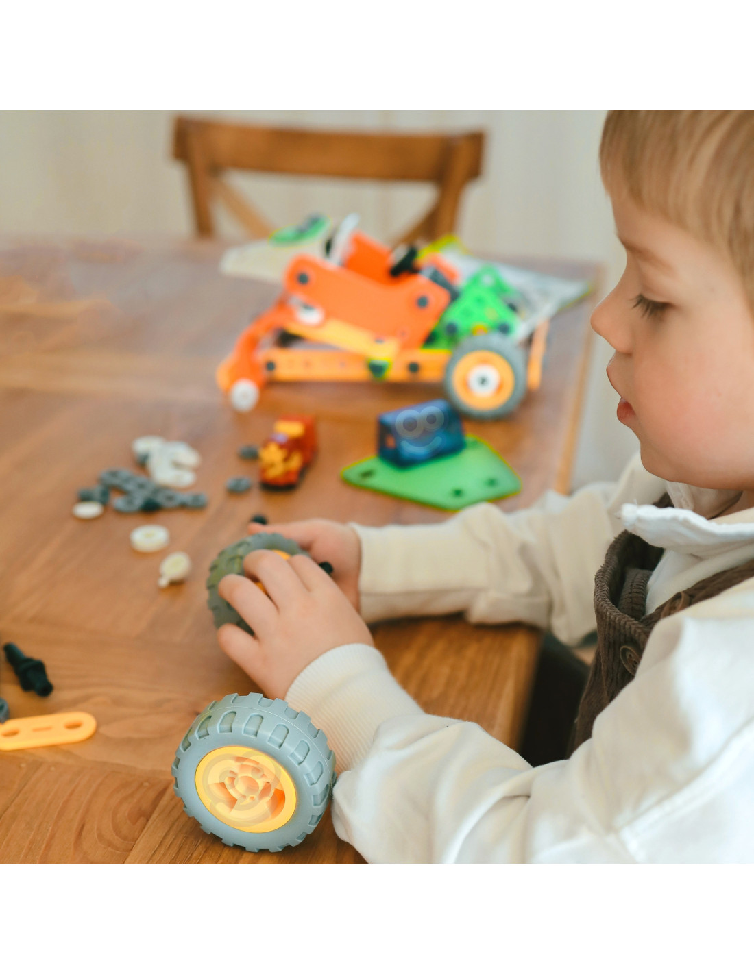 The 164-Piece 5-in-1 Construction Bricks set from WOOPIE is an excellent choice for any child who enjoys construction challenges and wants to develop their manual skills . Playing with this set can also be a great way to spend time with siblings or friends, teaching them cooperation and sharing ideas. With 164 flexible pieces, children can create up to 5 different models of vehicles and machines: a car , a quad bike , a helicopter , a plane , and a robot . Thanks to its innovative, flexible parts, the set not only allows for building but also allows for easy disassembly and assembly, allowing for many different combinations. The set is an ideal gift for children who are beginning to discover the world of construction, engineering, and mechanics through play!
