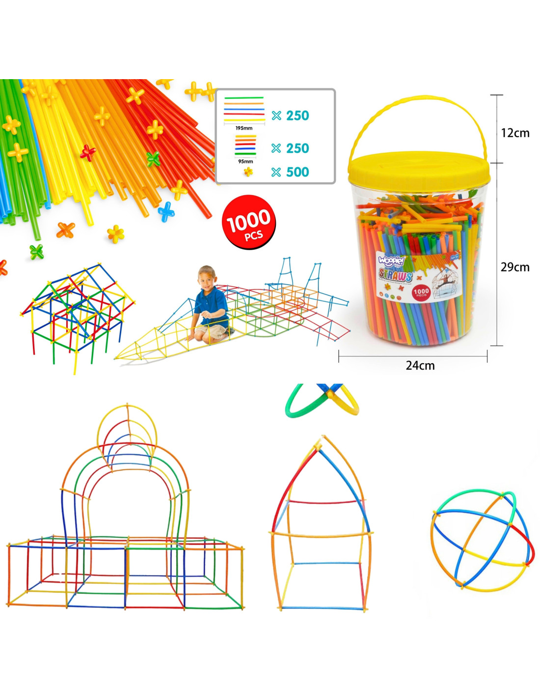 WOOPIE Building Blocks Colorful Straws 1000 pcs.