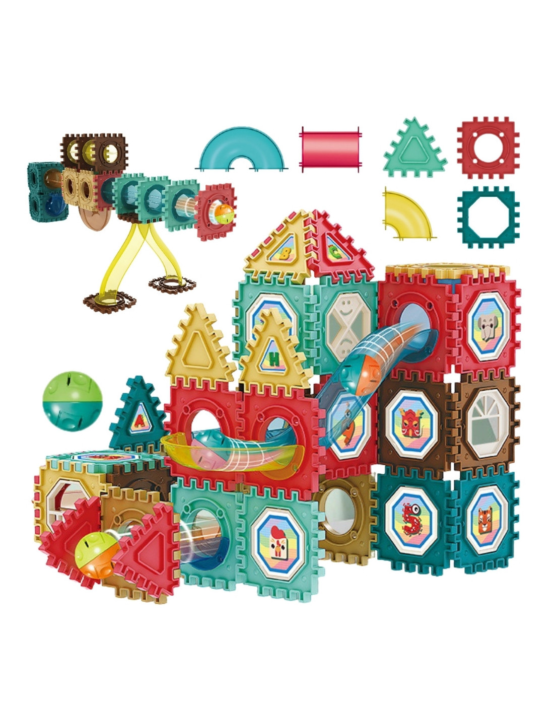 - - A total of 68 different magnetic construction elements and ball track elements