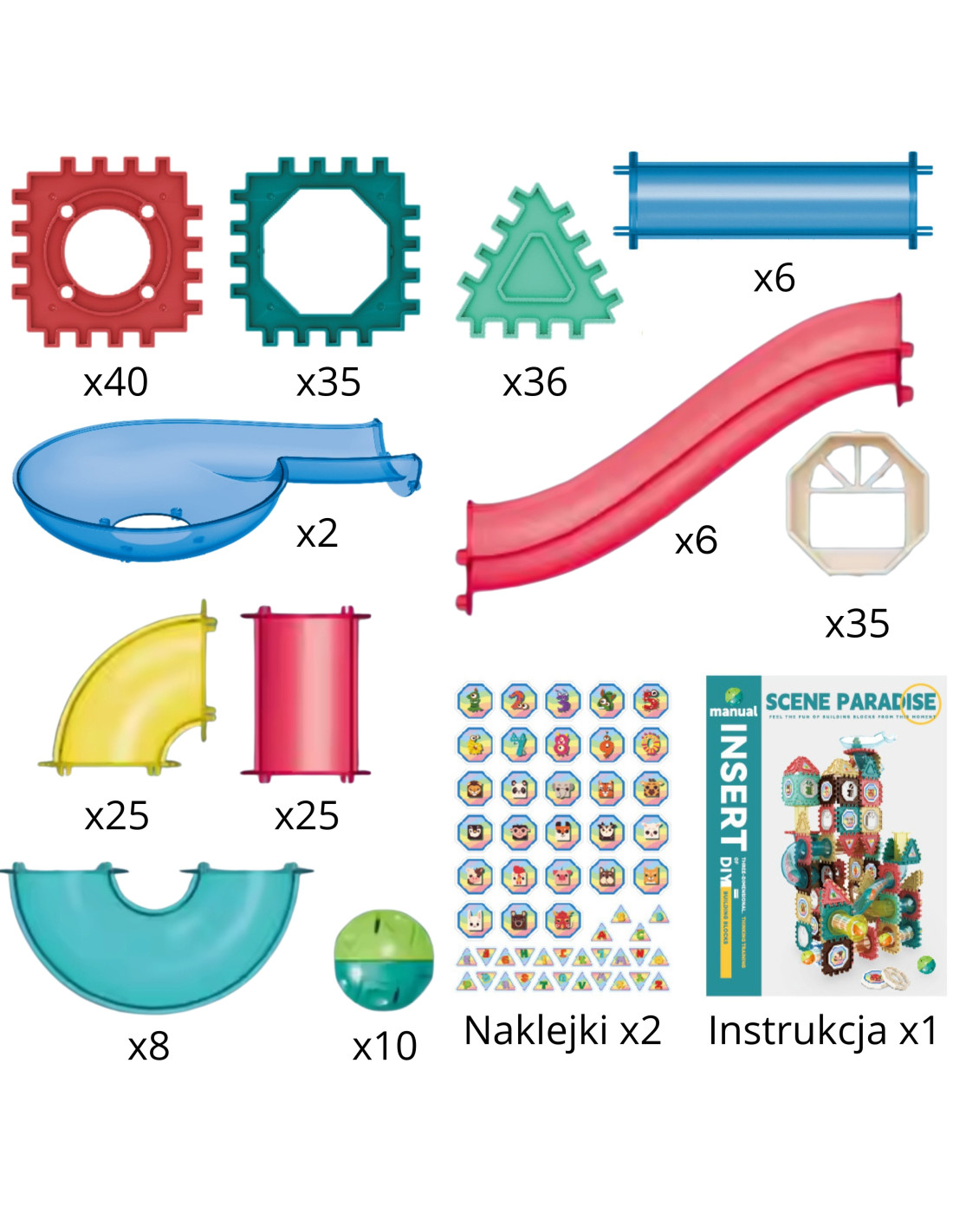 - - Large number of elements (228 pieces) , transparent track elements